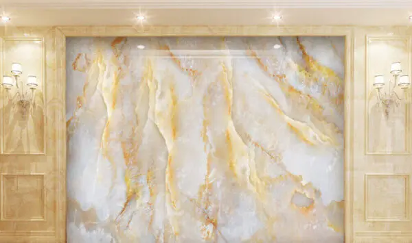 Fototapeta Zelené listy na geometrickém mramorovém vzoru