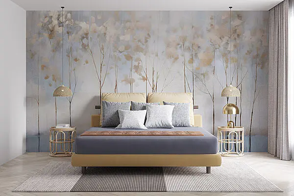 | Fototapeta s břízami (mlha) | Měkké přechody, uklidňující hloubka | Větší pocit prostoru, klidné večery |