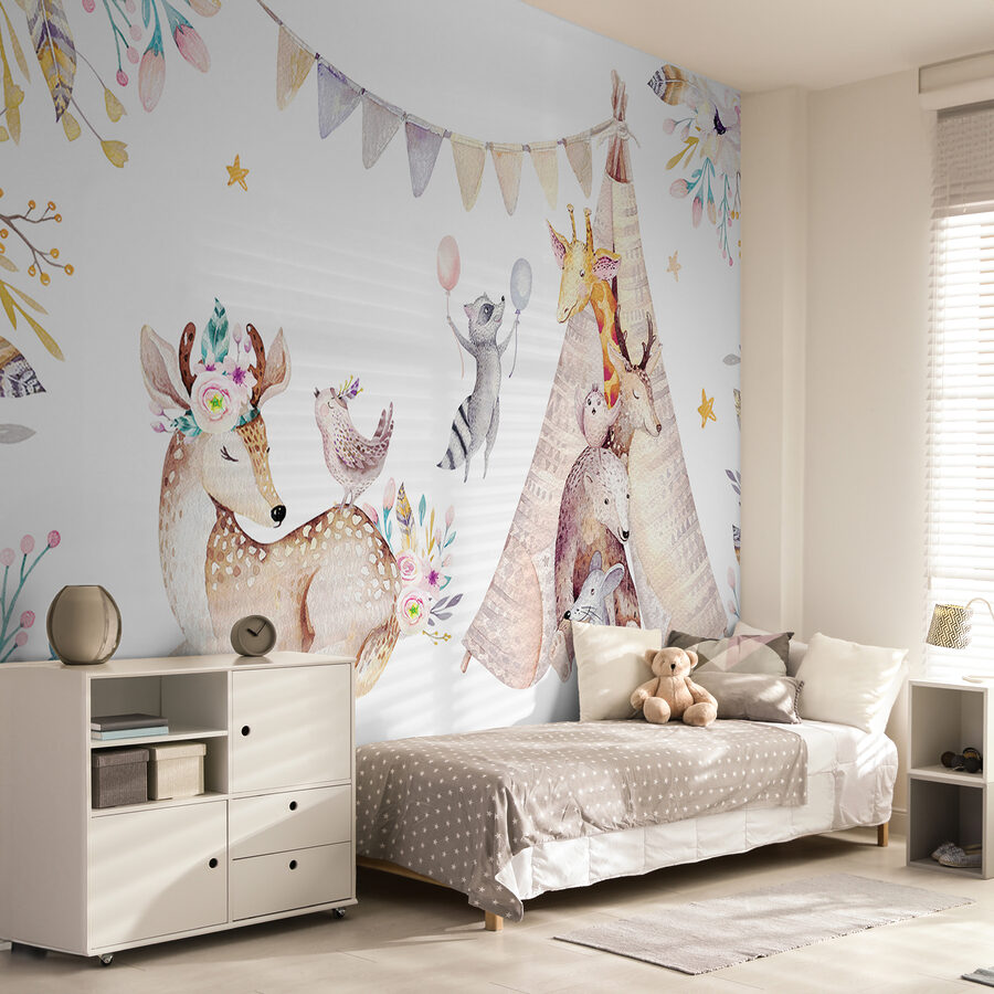 Perfektně se hodí do dceřina pokoje nebo do jakéhokoli dětského prostoru a působí jako objetí přírody! Představte si, jak se vaše dítko každé ráno probouzí a mává mývalovi… nebo si vypráví pohádky před spaním pod bedlivým dohledem žirafy a jelena. Je to jako mít kousek lesa z fantazie přímo u sebe doma – super útulné a hřejivé. Jemné barvy se dokonale hodí k většině dekorů a vytvářejí klidnou, ale hravou atmosféru. Jednoduše rozkošný!