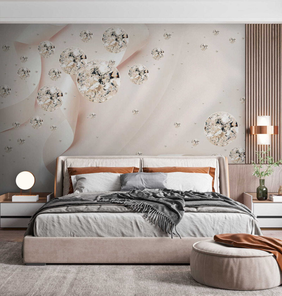 Proměňte nudnou stěnu v živé plátno s příběhy pomocí této krásné nástěnné malby. Představte si to: jemné stuhy vířící kolem fascinujících koulí, které zútulní a zároveň dodají eleganci každé místnosti. Je to jako snový tanec jemných barev a něžných tvarů, ideální pro případy, kdy už vám ta obyčejná stěna prostě nestačí. Ať už se jedná o klidnou ložnici nebo živý obývací prostor, tato nástěnná malba našeptává kouzlo a půvab – jako hřejivé objetí pro vaše stěny. Pozvěte do svého domova dotek kouzla, který nechá hosty přemýšlet, jak jste dokázali takové kouzlo. Je to dekorace s příměsí uměleckého vkusu!