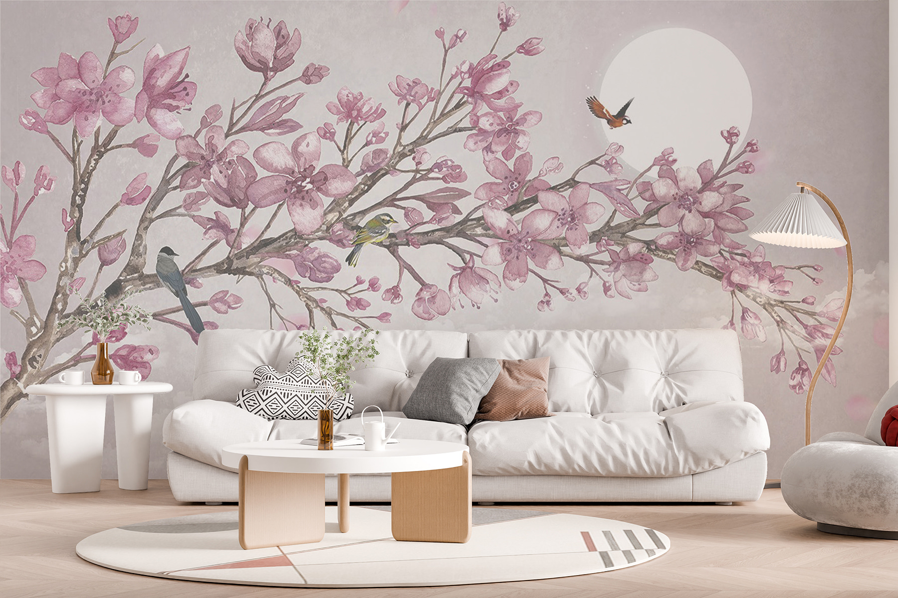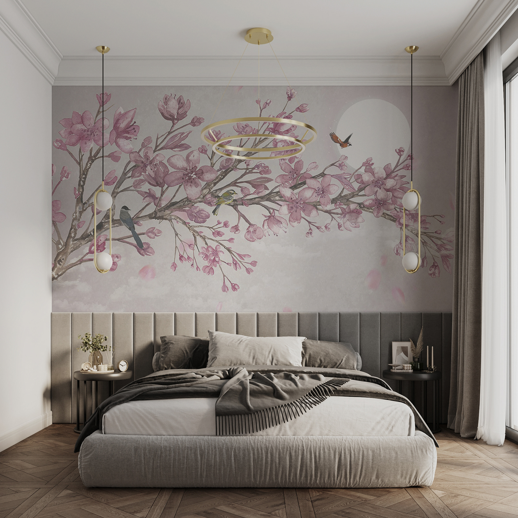 Proměňte svůj prostor pomocí této okouzlující nástěnné malby s půvabným ptáčkem, který se uvelebuje na rozkvetlé větvi. Jemné růžové květy a měkké barvy vnesou do interiéru pocit jarní svěžesti, jako hřejivé objetí po dlouhé zimě. Představte si, jak popíjíte ranní kávu nebo se choulíte do klubíčka s knihou, zatímco tento roztomilý výjev rozjasňuje místnost. Není to jen nástěnná malba, je to malý kousek přírody, který se ovíjí kolem vašich stěn a vybízí k úsměvu a snění. Je ideální pro ty, kteří rádi nacházejí krásu v každodennosti, a dodává jemný rozmar, kterému je těžké odolat.
