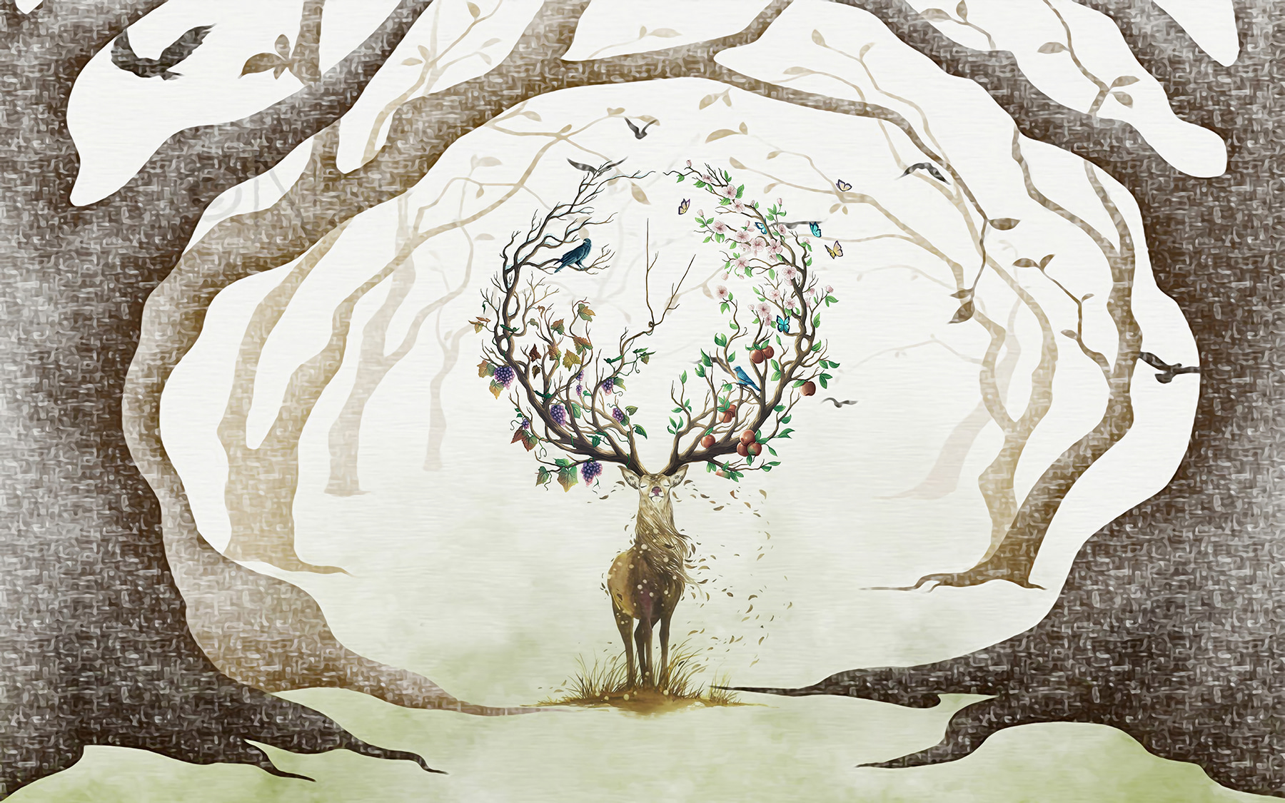 Picture this: a serene deer standing gracefully, its antlers transformed into lush branches, bursting with the colors of nature. This mural isn’t just a wall decoration; it’s an invitation to slow down and sip your morning coffee while embracing the peaceful vibe. Imagine watering your plants and stealing glances at this masterpiece, feeling as if you’re in an enchanted forest rather than your living room.