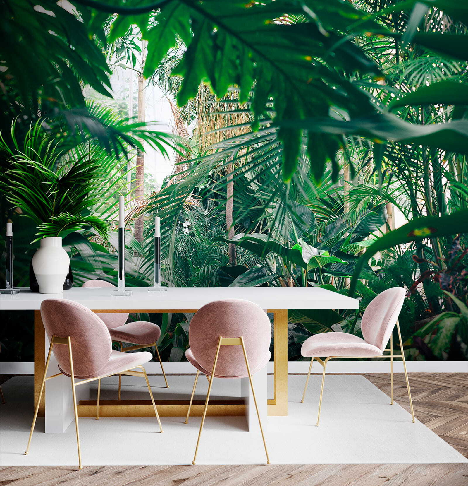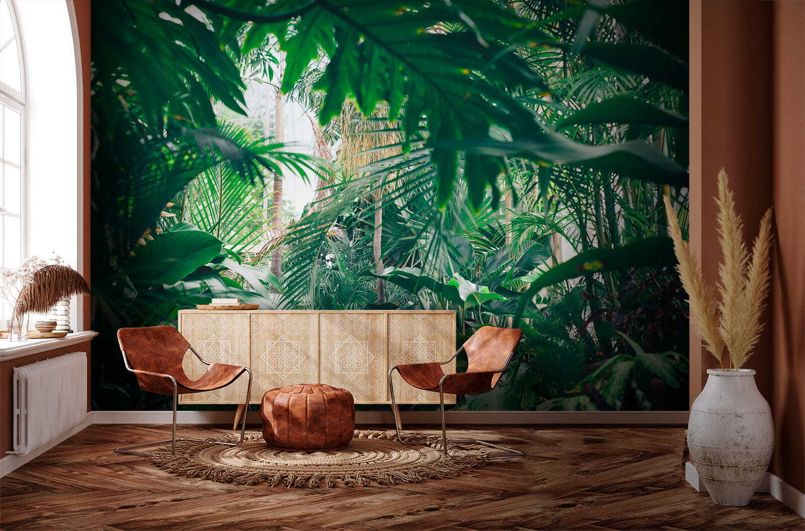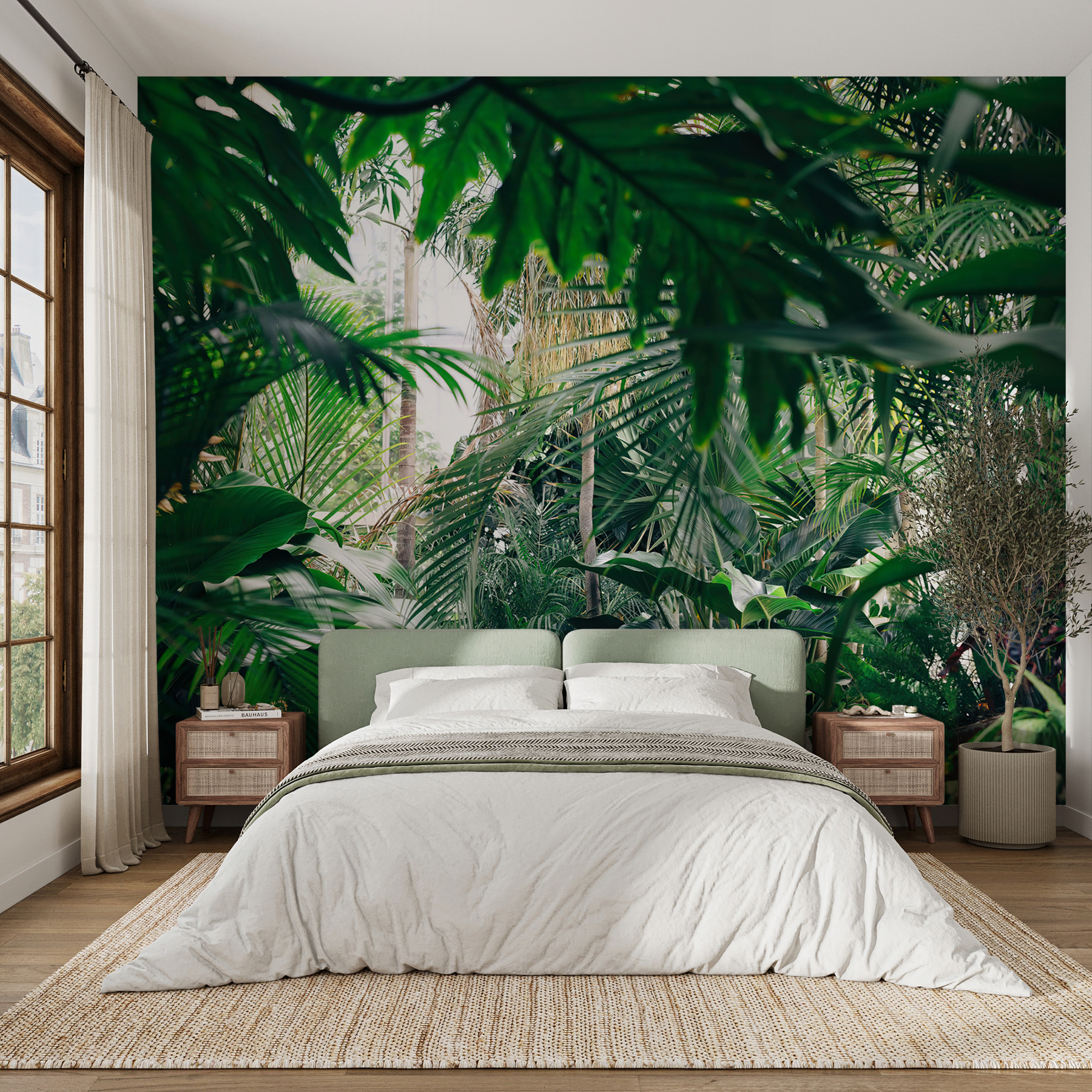 Proměňte každou místnost v tropický ráj pomocí této úžasné nástěnné malby s bujnou džunglí zalitou slunečním světlem. Představte si, že vejdete do svého prostoru a budete mít pocit, že jste vstoupili přímo do klidné džungle, kde je čerstvý vzduch a sluneční světlo proniká skrz listy tak akorát. Je to jako přenést si kousek přírody do interiéru bez postřiku proti hmyzu! Ideální pro ty, kteří touží po troše zeleně, ale nemají zelený palec. Přátelé si budou myslet, že jste našli dokonalé místo na dovolenou přímo u vás doma. Jen si představte, jak se uvelebujete s dobrou knihou nebo si vychutnáváte šálek kávy obklopeni tímto živým únikem. Není to jen nástěnná malba, je to závan čerstvého vzduchu pro vaše stěny!