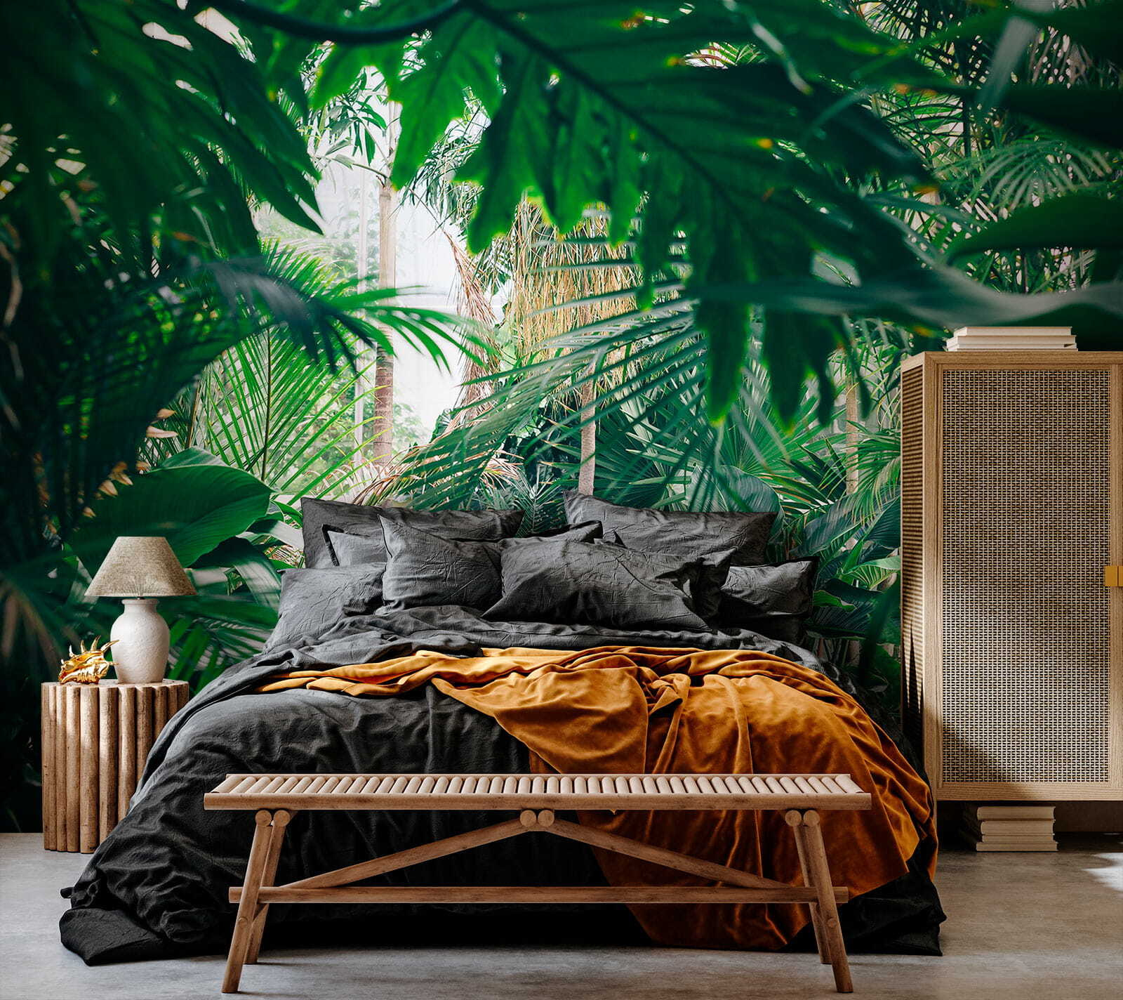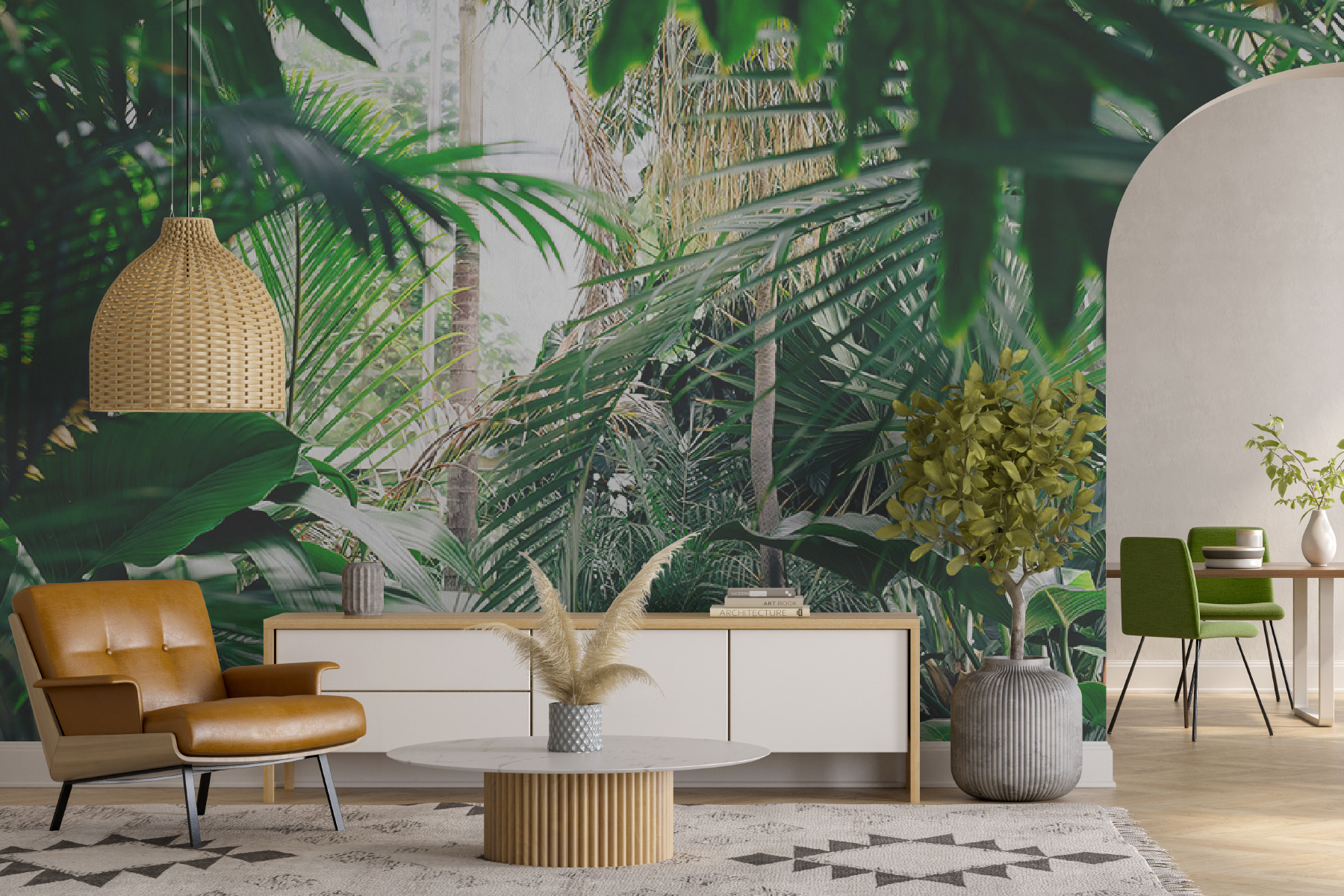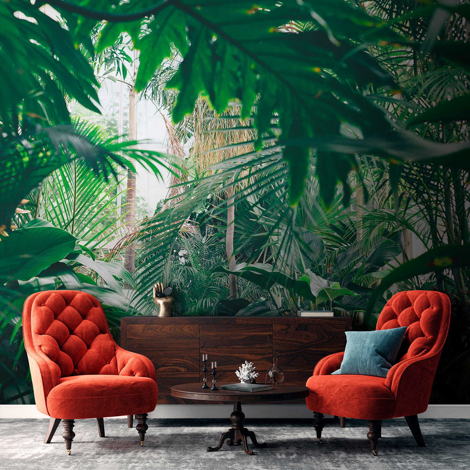 Proměňte každou místnost v tropický ráj pomocí této úžasné nástěnné malby s bujnou džunglí zalitou slunečním světlem. Představte si, že vejdete do svého prostoru a budete mít pocit, že jste vstoupili přímo do klidné džungle, kde je čerstvý vzduch a sluneční světlo proniká skrz listy tak akorát. Je to jako přenést si kousek přírody do interiéru bez postřiku proti hmyzu! Ideální pro ty, kteří touží po troše zeleně, ale nemají zelený palec. Přátelé si budou myslet, že jste našli dokonalé místo na dovolenou přímo u vás doma. Jen si představte, jak se uvelebujete s dobrou knihou nebo si vychutnáváte šálek kávy obklopeni tímto živým únikem. Není to jen nástěnná malba, je to závan čerstvého vzduchu pro vaše stěny!