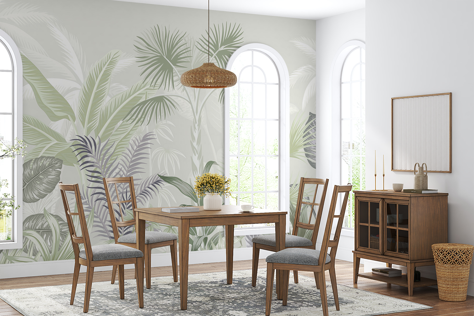 Představte si, že při každém vstupu do místnosti vstoupíte do uklidňujícího deštného pralesa. To je kouzlo “nástěnných maleb Ilustrace tropických listů v jemných odstínech”. Díky jemné zeleni a svěžímu listoví je to jako mini dovolená, aniž byste museli opustit svůj domov. Jakmile vaše oči zabloudí po složitých listech, okamžitě pocítíte, jak na vás doléhá klid. Je to víc než jen dekorace – je to malý únik.