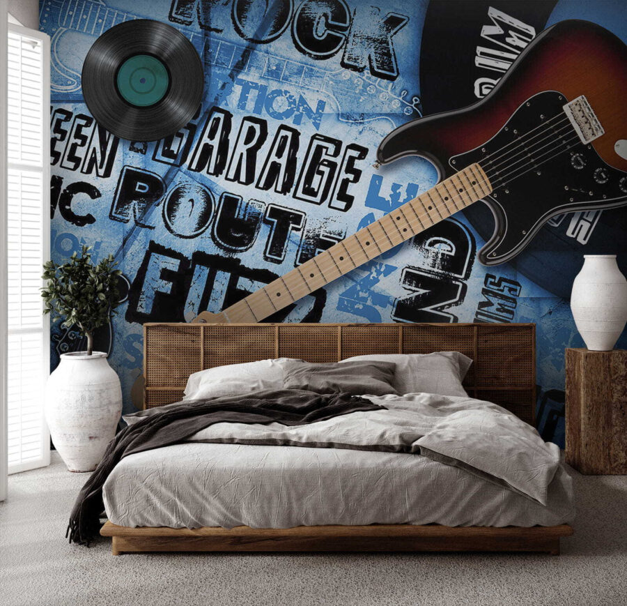 Toužíte po rock’n’rollu ve svém prostoru? Tato nástěnná malba “Rock and Roll Dreams Unleashed” je perfektní – jako byste vstoupili do chladného obchodu s vintage deskami. Zářivé blues, ostré písmo a ikonické kytary křičí postoj a rebelství. Ideální pro teenagery na pokraji svých koncertních snů nebo pro mladé s hvězdami v očích. Představte si, že se každý den probouzíte s touto energií – je to jako kytarový riff pro vaše zdi! Skvěle se hodí pro dodání pořádné atmosféry ložnici nebo pracovně milovníka hudby. Navíc to prostě vypadá úžasně!