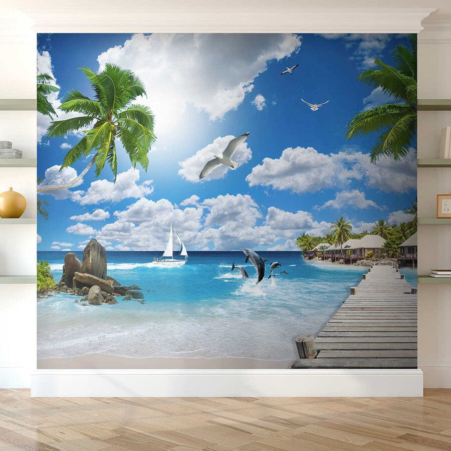 Představte si, že při každém vstupu do místnosti vstoupíte do tropického ráje. Tato úžasná nástěnná malba “Pták letící v oblacích” vás přenese na rychlý výlet do sluncem zalitých dnů a jemného mořského vánku. Zářivá modř a svěží zeleň vás vtáhnou dovnitř jako chladivý nápoj v horkém dni. Je ideální na stěnu, která potřebuje trochu lásky, a vytváří pocit nekonečného léta. Představte si, jak se bavíte s přáteli nebo si jen užíváte klidné chvíle – vdechněte tuto klidnou atmosféru. Není to jen dekorace; je to pozvánka k úniku z každodennosti a ponoření se do vlastního kousku zázračné přírody.