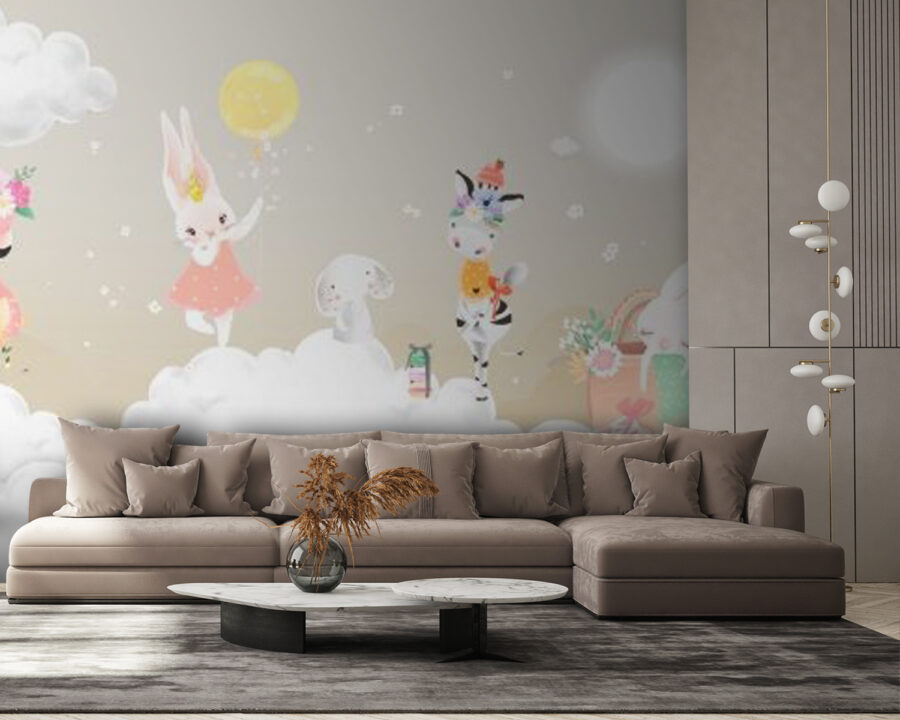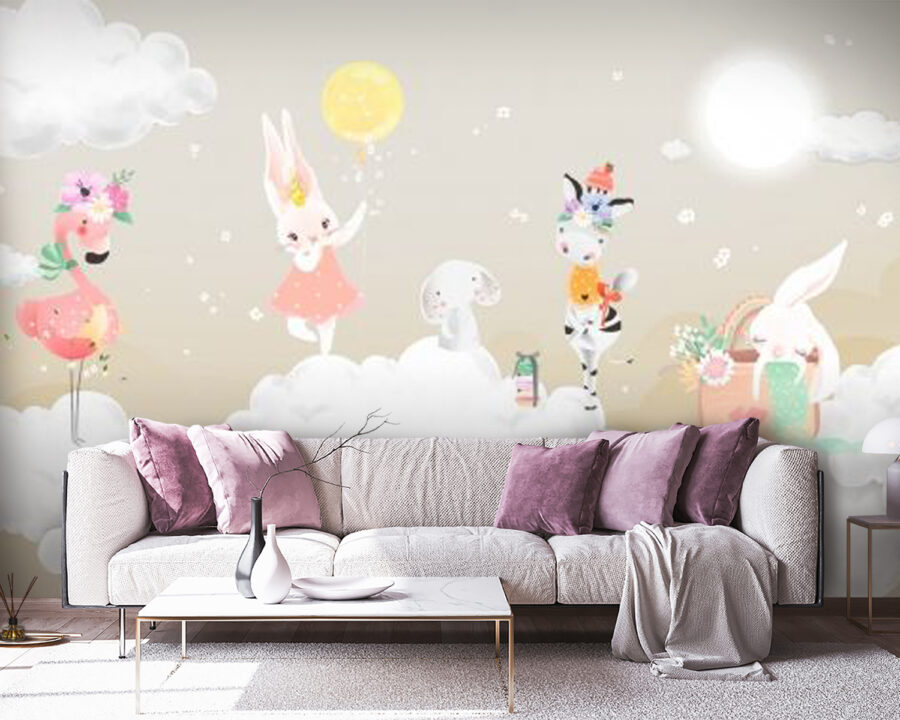 Proměňte nudnou zeď ve snový ráj s touto okouzlující fototapetou s náladovou skupinou zvířat dovádějících na nadýchaných mracích. Představte si to: hravý plameňák, okouzlující králíček v růžových šatech a zebra s malým kloboučkem – prostě se povalují na obloze, jako by jim to tu patřilo. Tato nástěnná malba přináší hřejivou, veselou atmosféru, která může vyvolat radost v každé místnosti, od živého dětského pokoje až po útulný čtecí koutek. Působí jako objetí na stěnách, které zahalí prostory do pocitu úžasu a představivosti. Kdo by se neusmál pokaždé, když projde kolem? Ideální pro srdce, které miluje jedinečné dekorace a špetku magie.