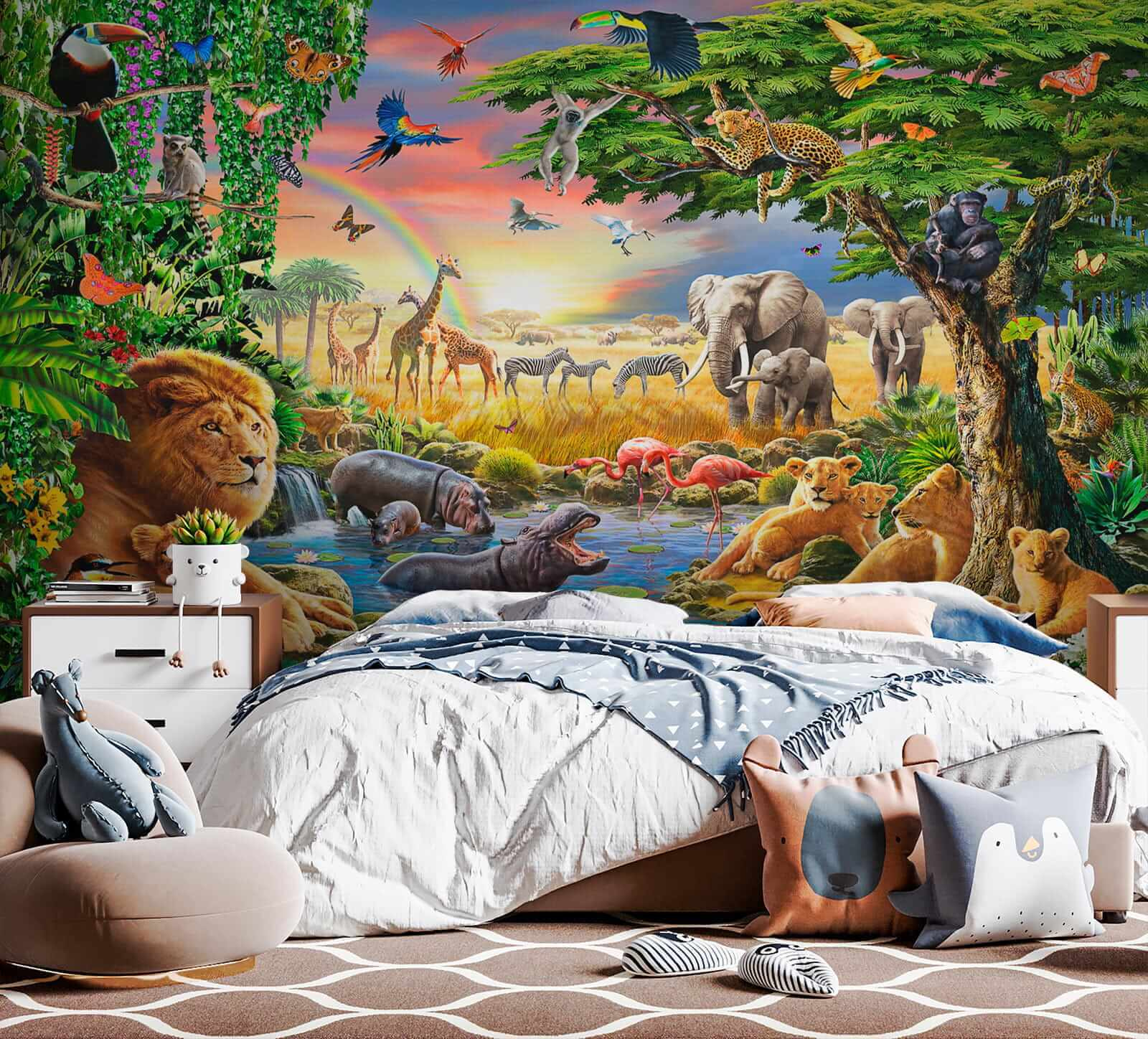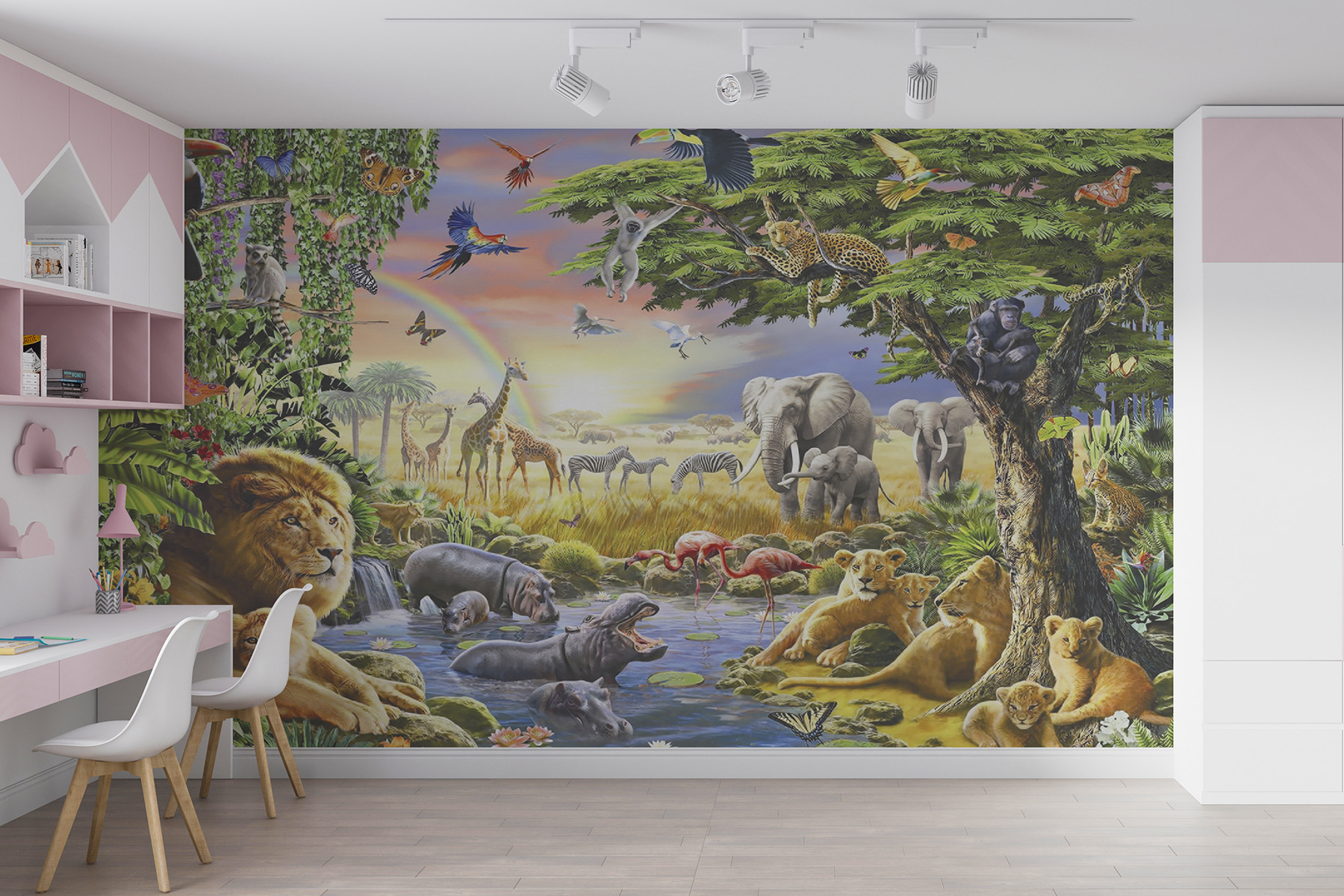 Představte si, že se přímo ve svém obývacím pokoji ocitnete v bujné savaně – přesně taková je tato nástěnná malba “Savanová zvířata se shromažďují u vody”. Je to jako mini africké safari s polehávajícími lvy, skotačícími plameňáky a slony, kteří se jen tak poflakují u vody. Představte si to: přijdete domů po dlouhém dni, podíváte se na tuto živou nástěnnou malbu a bum – okamžitě se dostaví pohodová atmosféra. Je to víc než dekorace, je to scéna plná života a barev. Ideální pro dodání nádechu dobrodružství do každé místnosti – stačí pohled a možná téměř uslyšíte vzdálené volání divočiny. Navíc, nebylo by to skvělé pro rozproudění konverzace s přáteli? Rozhodně se jedná o výstavní kousek!