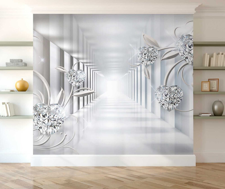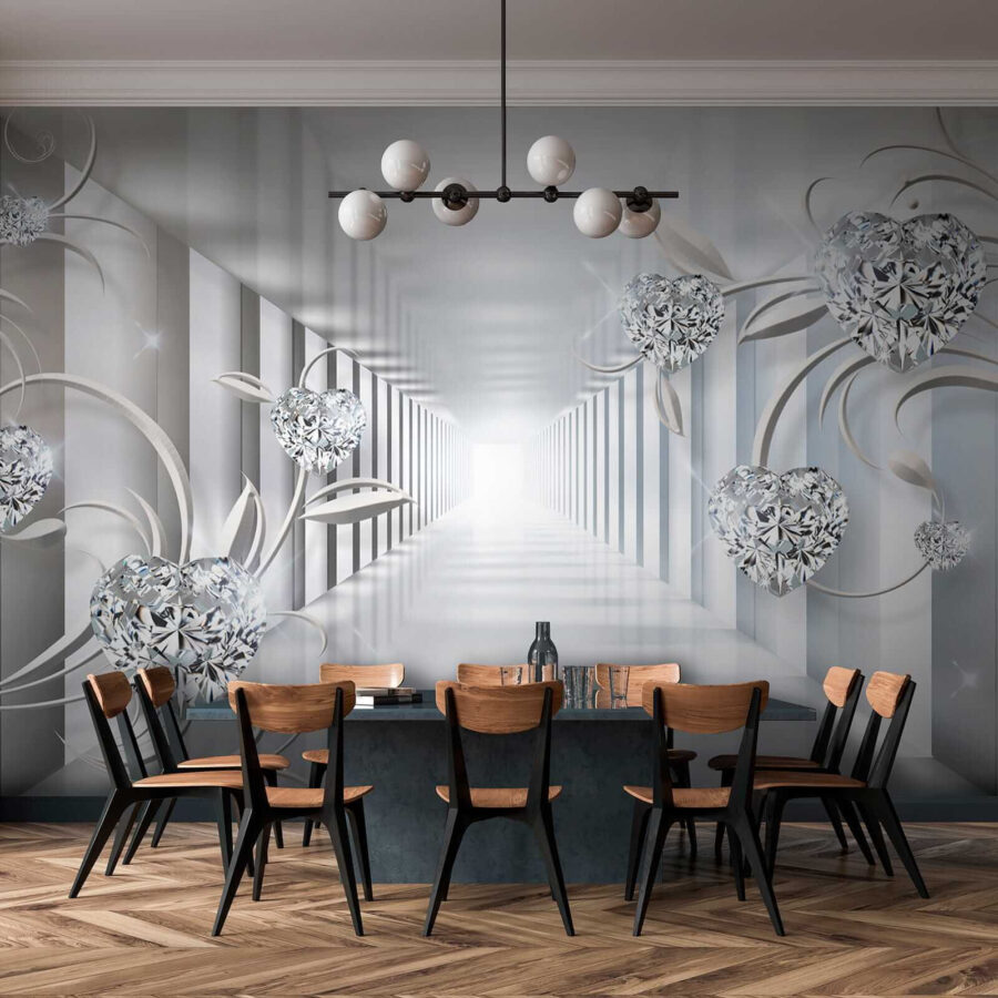 Proměňte jakýkoli prostor ve snovou oázu s nástěnnou malbou Diamant ve tvaru srdce. Tato fototapeta přináší nádech rozmarnosti a romantiky, takže je ideální do ložnic, obývacích pokojů nebo kamkoli, kde by se hodil nádech kreativity. Představte si, že vejdete do místnosti a přivítají vás tyto úžasné tvary srdce tančící mezi jemnými liánami. Je to, jako by vás stěny hřejivě objímaly. 3D efekt vás vtáhne dovnitř a vytvoří pocit hloubky, který vás láká k prozkoumání tohoto kouzelného světa. Ideální pro lidi, kteří ocení trochu elegance a zároveň si zachovají útulnost. Je to nádherná volba pro každého, kdo chce, aby jeho prostor působil jedinečně.