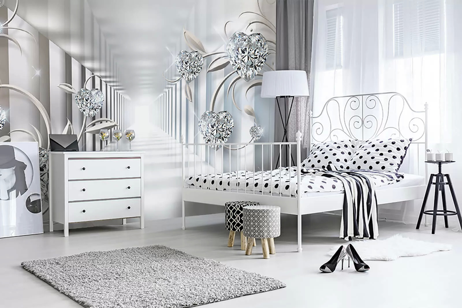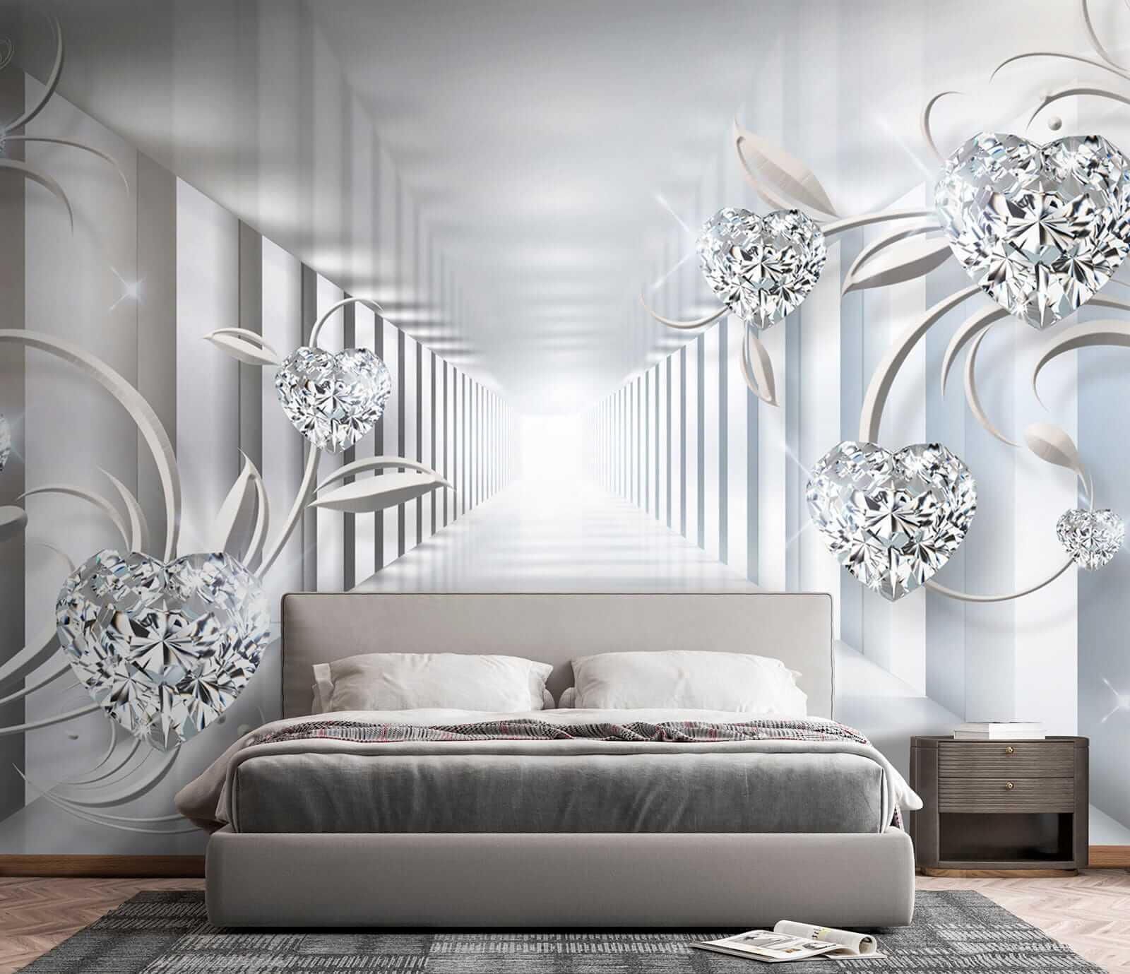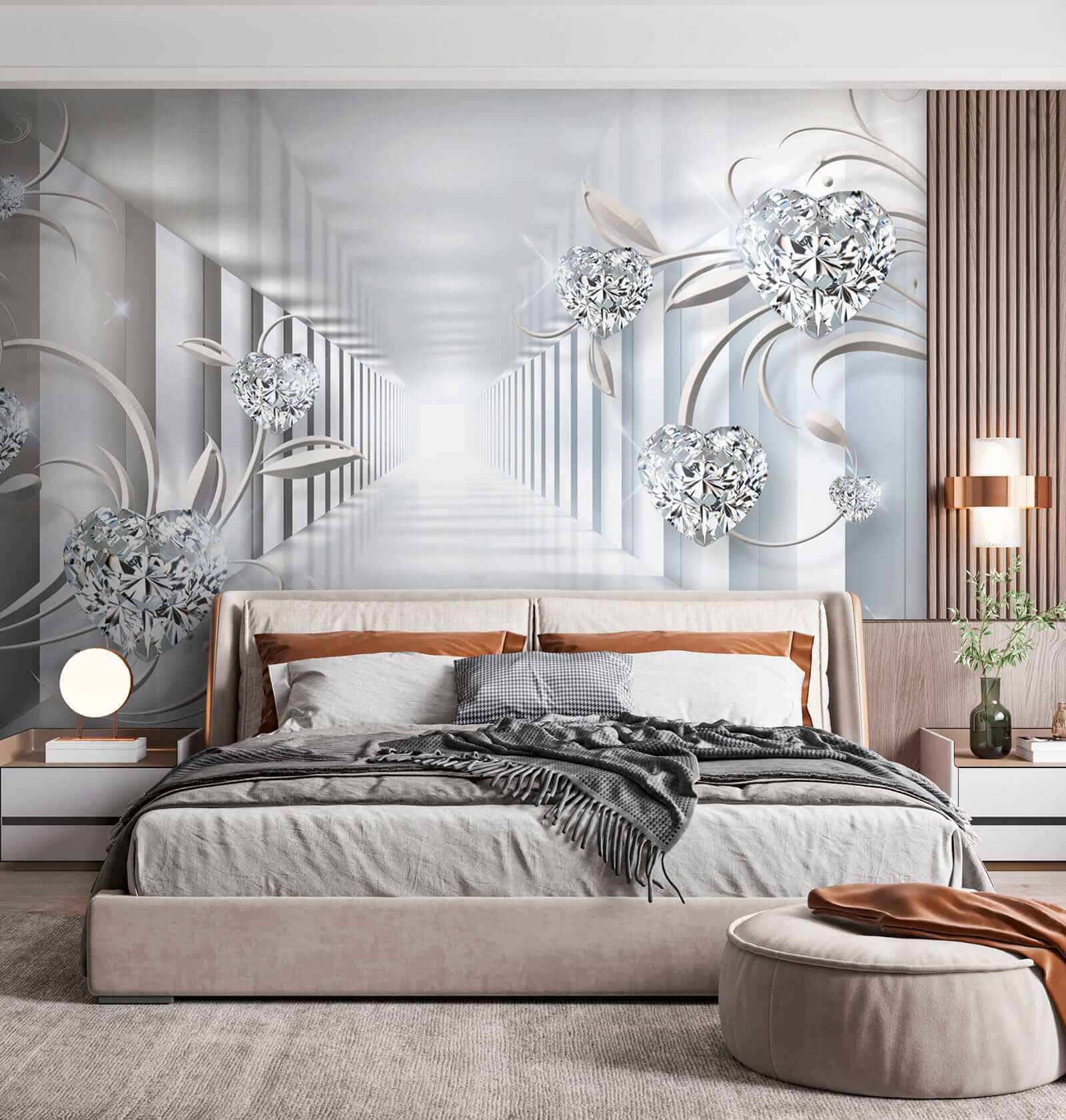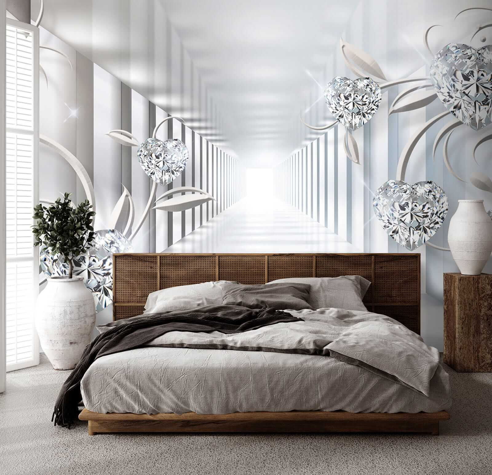 Proměňte jakýkoli prostor ve snovou oázu s nástěnnou malbou Diamant ve tvaru srdce. Tato fototapeta přináší nádech rozmarnosti a romantiky, takže je ideální do ložnic, obývacích pokojů nebo kamkoli, kde by se hodil nádech kreativity. Představte si, že vejdete do místnosti a přivítají vás tyto úžasné tvary srdce tančící mezi jemnými liánami. Je to, jako by vás stěny hřejivě objímaly. 3D efekt vás vtáhne dovnitř a vytvoří pocit hloubky, který vás láká k prozkoumání tohoto kouzelného světa. Ideální pro lidi, kteří ocení trochu elegance a zároveň si zachovají útulnost. Je to nádherná volba pro každého, kdo chce, aby jeho prostor působil jedinečně.