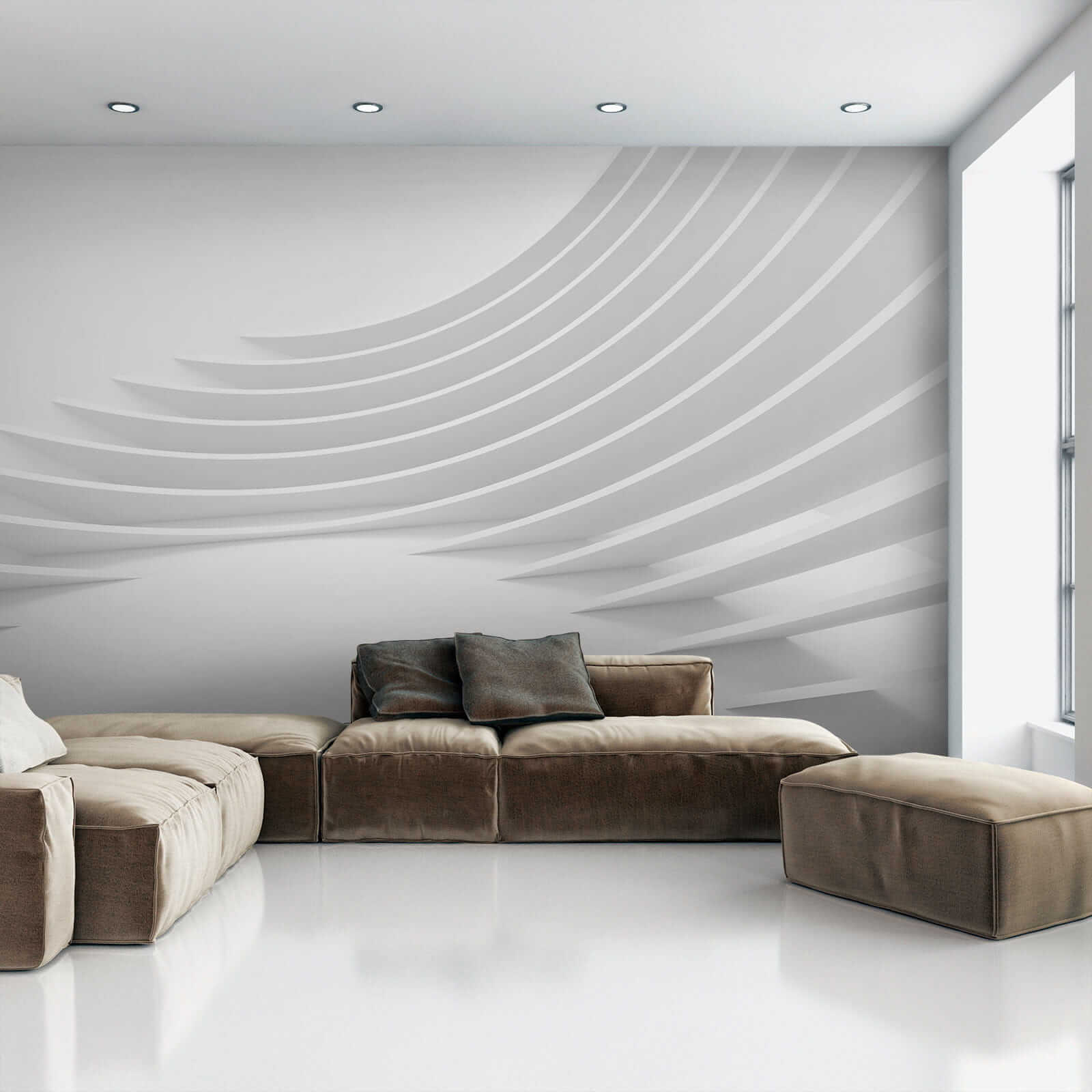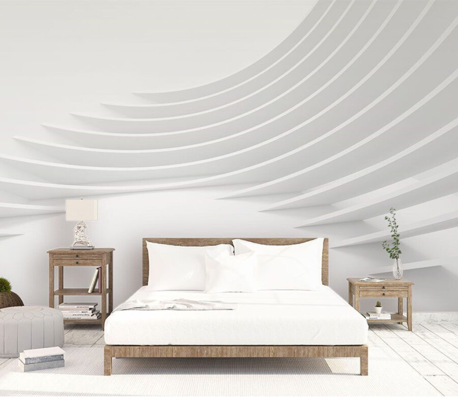 Představte si, že vejdete do místnosti a máte pocit, že jste vstoupili do klidné futuristické umělecké galerie… Tato nástěnná malba “Bílá police v pokoji” je naprosto kouzelná. Je to jako ty abstraktní návrhy, u kterých si říkáte: “Páni, co to je?”, ale v tom nejlepším slova smyslu. Je elegantní a moderní, má tyto chladné, zakřivené linie, které se zdají být nekonečně dlouhé – ideální pro to, aby jakákoli nudná stěna dostala zásadní vylepšení.