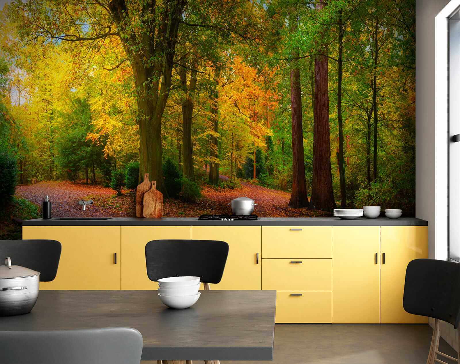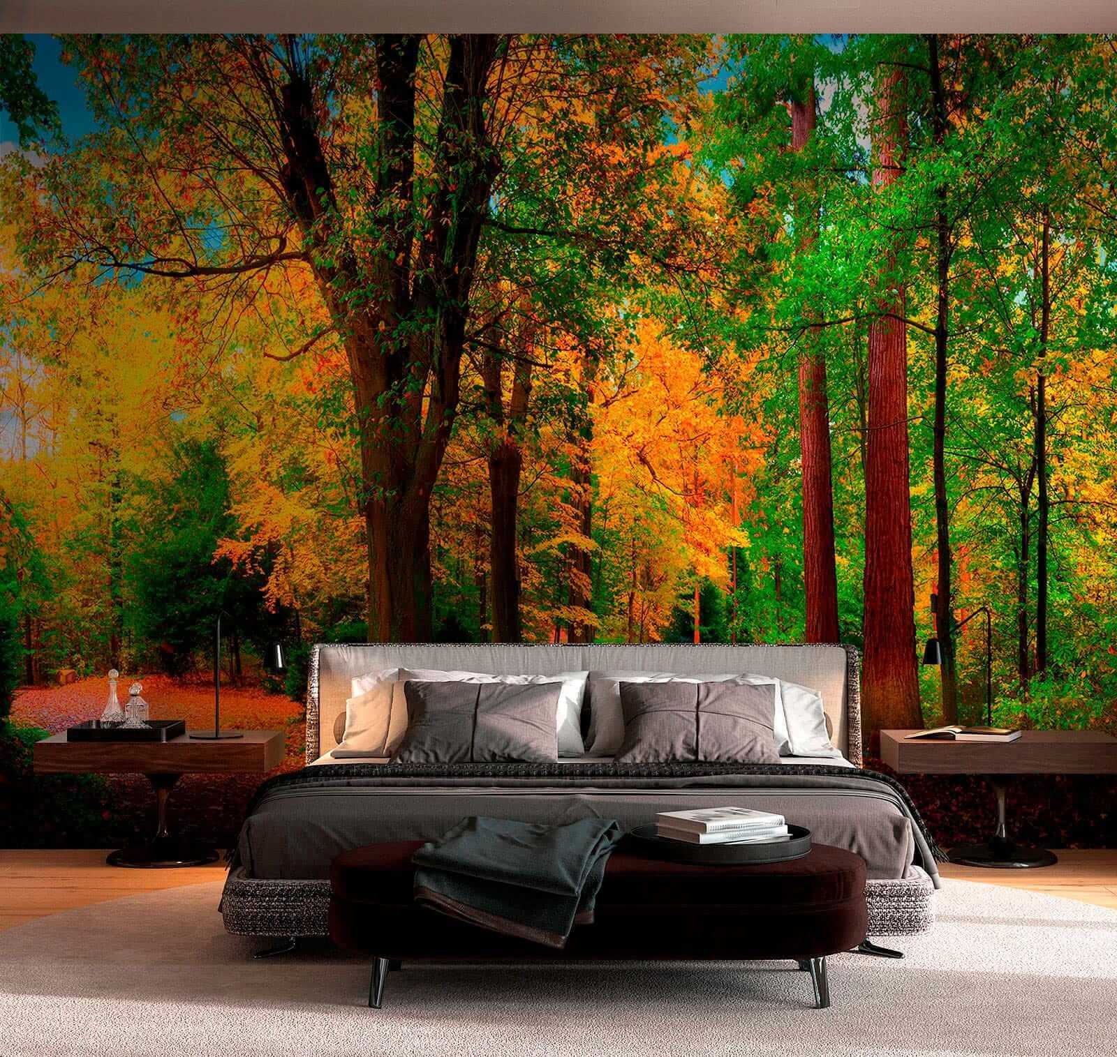 Proměňte jakýkoli prostor pomocí této úžasné nástěnné malby barevného podzimního lesa. Představte si klikaté cesty obklopené živými stromy, jejichž listy jsou namalovány v sytých odstínech, které vystihují podstatu podzimu. Je to jako přenést kousek přírody do interiéru, kde může na pozadí každodenního života doutnat jemná náruč lesní procházky. Představte si, že při pohledu na tento výjev popíjíte kávu nebo se v duchu touláte po těchto klidných stezkách. Je ideální pro dodání tepla a klidu vašemu domovu, rozproudí konverzaci a přinese dotek divočiny přímo na vaše stěny. Milovníci přírody, radujte se!