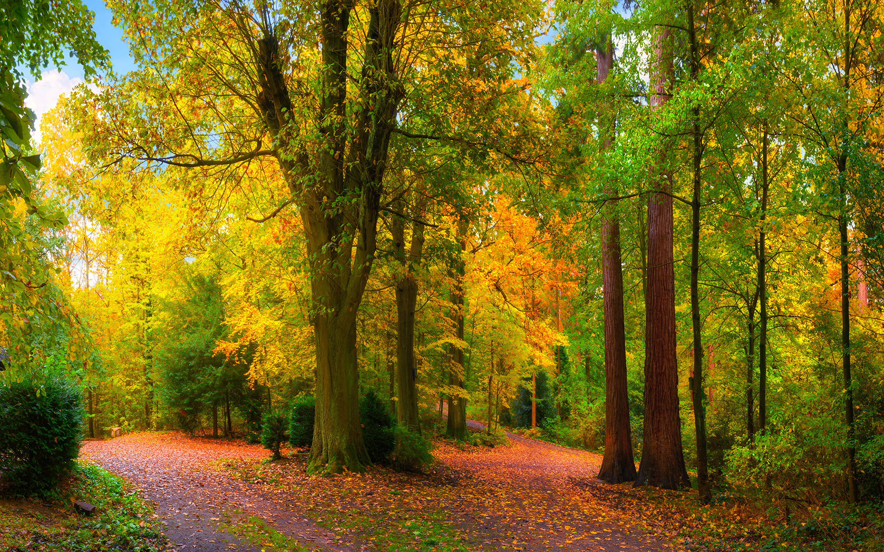 1 recenze Fototapeta Barevný podzimní les s klikatící se cestou