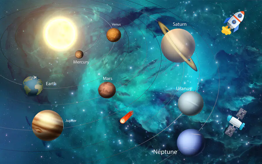 Je čas vnést do dětského pokoje trochu vesmíru? Nástěnná malba “Modrá planeta ve vesmíru” je jako vstupenka do galaxie, aniž byste museli opustit domov. Představte si, že usínáte pod oblohou plnou zářivých planet a hvězd – je to jako noční cesta Mléčnou dráhou!