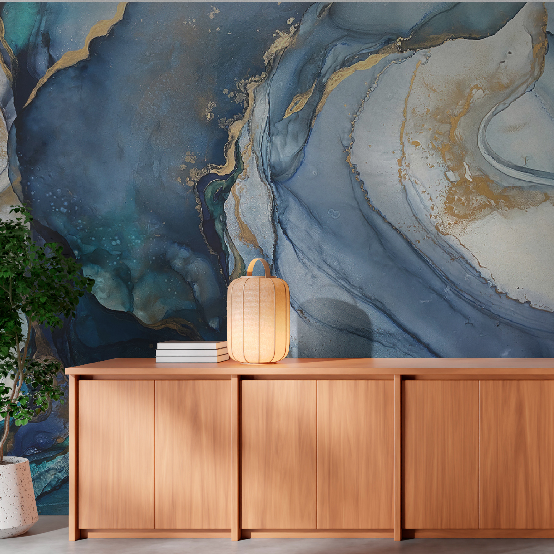 Ponořte se do oceánu klidu s touto úžasnou nástěnnou malbou, kde vířící modré vzory tančí spolu jako vlny v jemném vánku. Není to jen tapeta, je to mini dovolená pro vaše stěny, která promění obyčejný pokoj v klidné útočiště. Představte si, že popíjíte kávu, zatímco kolem vás víří modré barvy, díky nimž se váš prostor bude cítit jako plážový úkryt. Tento design je ideální pro útulný čtecí koutek nebo inspirativní pracovní prostor a dodává mu osobitost, aniž by křičel o pozornost. Až hosté vejdou dovnitř, pravděpodobně si budou myslet, že máte v rodině interiérového designéra – tak si klidně užívejte vln!