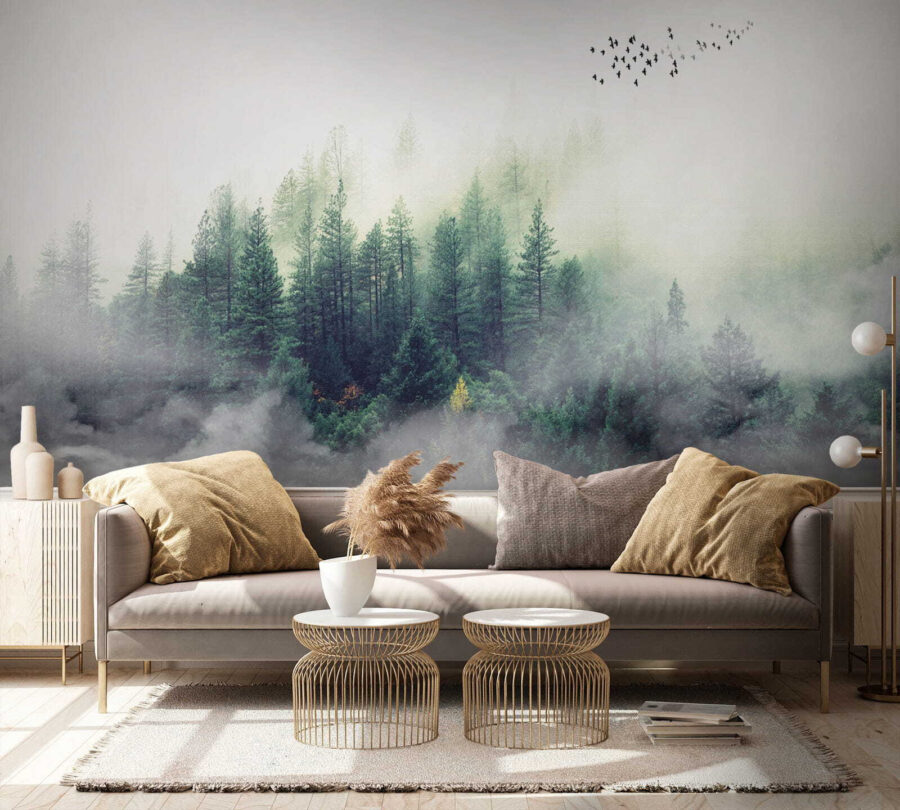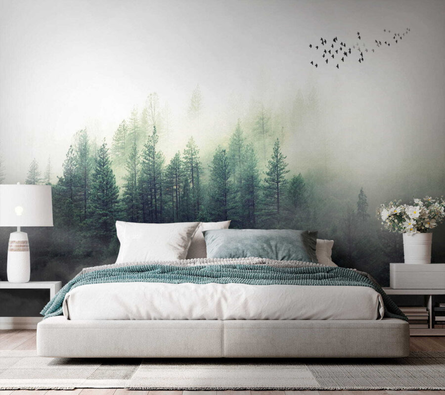Představte si, že se každé ráno díváte na mlžný les – ach, ten klid! Tato nástěnná malba “Rozmazaný obraz obličeje člověka” jako by přinesla útulnou atmosféru chaty přímo do vašeho obývacího pokoje. Les působí tak kouzelně, skoro jako byste mohli vejít přímo do klidné zeleně a ztratit se v přírodě. Navíc ti ptáci poletující v dálce dodávají nádech rozmarnosti.