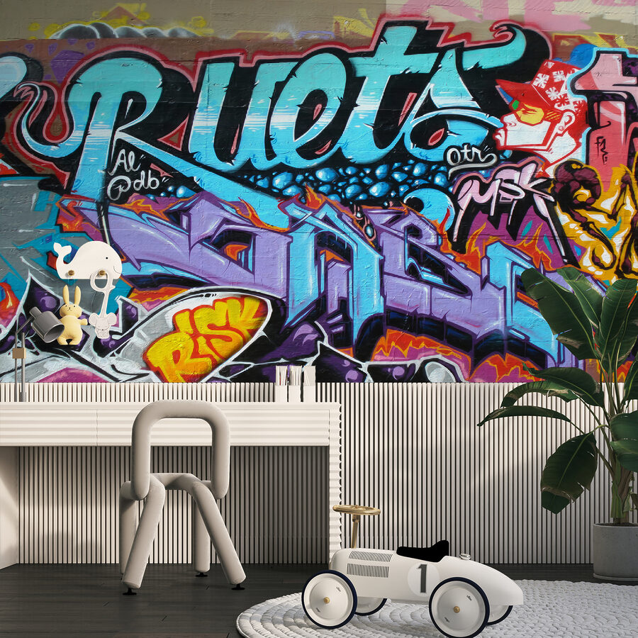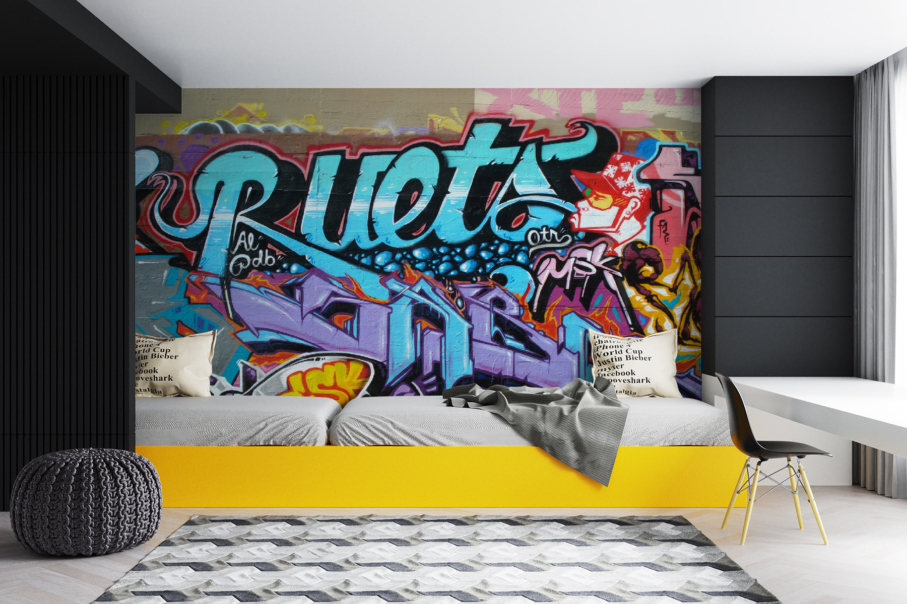 Tato nástěnná malba je ideální pro teenagery nebo mladé dospělé, kteří chtějí ve svém prostoru trochu městské atmosféry, a křičí osobnost – aniž by řekla jediné slovo. Má všechny ty zářivé barvy a složité vzory, díky kterým si budete připadat, jako byste se procházeli uměleckou postranní uličkou v rušném městě.