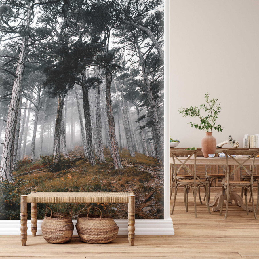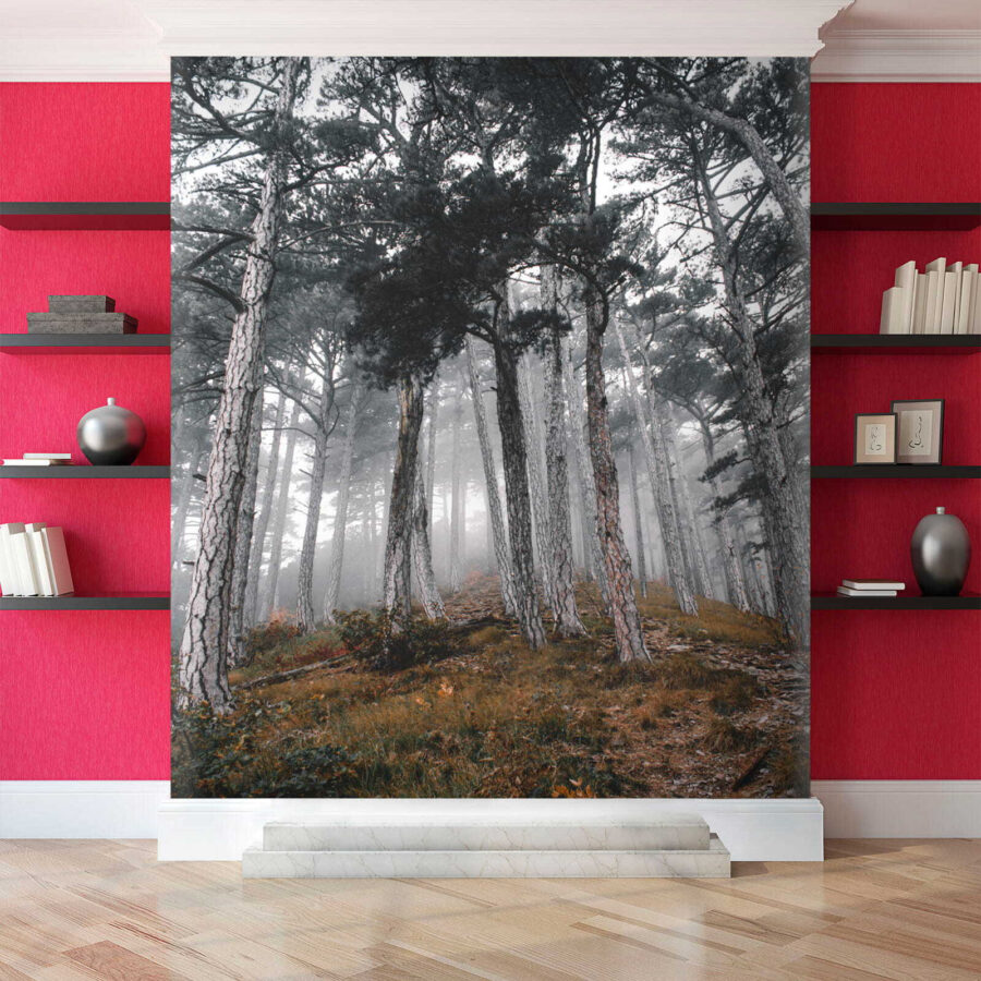 Představte si, že vstupujete do klidného lesa, kde se tyčí vysoké stromy a mlha šeptá tajemství přírody. Tato nástěnná malba „Les se stromy v mlze“ promění váš prostor v klidné útočiště. Zachycuje ten snový okamžik, kdy sluneční paprsky tančí v mlze a vytvářejí jemné stíny a pocit úžasu. Představte si, jak se zachumláte s knížkou nebo popíjíte kávu, zatímco vás obklopuje tato klidná scéna – je to jako přivést přírodu dovnitř bez hmyzu! Ideální pro všechny, kteří chtějí přidat svým stěnám nádech klidu a tajemna. Tak proč nenechat svou fantazii bloudit mezi těmito zamlženými stromy? Je to téma k rozhovoru, připomínka, že je třeba dýchat, a kousek lesní magie, vše v jednom!