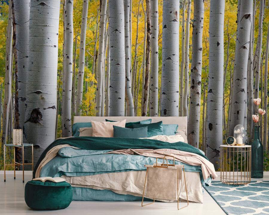 Přeměna prostoru? Tato nástěnná malba se skupinou bílých stromů s krásnými žlutými listy je jako kousek přírody přímo na vaší zdi. Představte si, že vejdete do místnosti a okamžitě pocítíte tu klidnou atmosféru jako při poklidné procházce lesem, aniž byste museli opustit domov. Vysoké, elegantní stromy jako by stály na stráži a vytvářely jemné pozadí, které přináší teplo a barevný nádech. Ideální do útulných zákoutí nebo i do fádních kancelářských prostor, které potřebují oživit. Budete si chtít nalít šálek čaje, vzít si dobrou knihu a prostě se kochat výhledem. Kdo by řekl, že stěny mohou mít takovou útulnou jiskru?