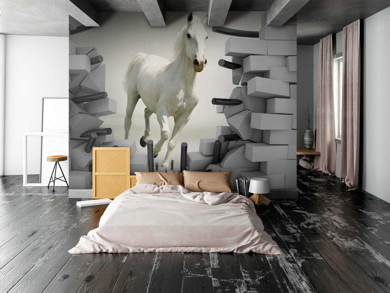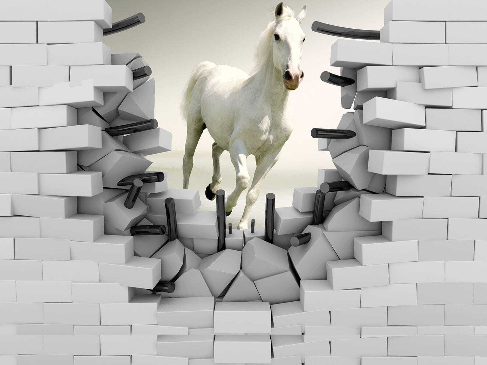 Představte si, že se cítíte, jako by do vašeho pokoje doslova cválal bílý hřebec – přímo skrz zeď! Přesně to získáte s touto úžasnou fototapetou. Má neuvěřitelný 3D efekt, díky kterému to vypadá, jako by se kůň chystal vyskočit z uměleckého díla přímo do vašeho prostoru. Děti budou v úžasu a budou si myslet, že jsou součástí nějakého kouzelného dobrodružství. A pro dospělé – určitě to bude důvod ke konverzaci! Ať už se jedná o dětský pokoj, zábavný obývací prostor, nebo dokonce kreativní kancelářský prostor, tato nástěnná malba přináší příval energie a nádech rozmarnosti. Je okouzlující, odvážná a tak akorát nečekaná – prostě se na ni nemůžete dívat bez úsměvu!