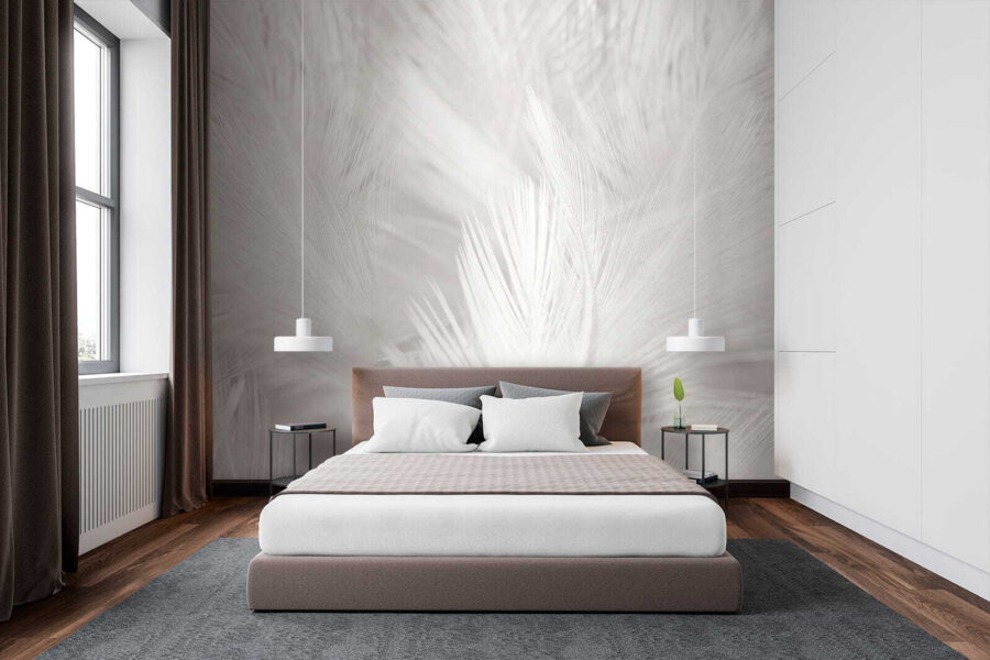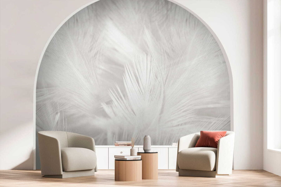 Měkkost bílé na bílé dodává tuto klidnou atmosféru a vážně, kdo by nemohl použít trochu více klidu ve svém prostoru? Ideální pro útulné večery nebo klidná rána s šálkem kávy. A nejde jen o vzhled! Díky této nástěnné malbě se každá místnost může cítit prostorněji a vzdušněji.