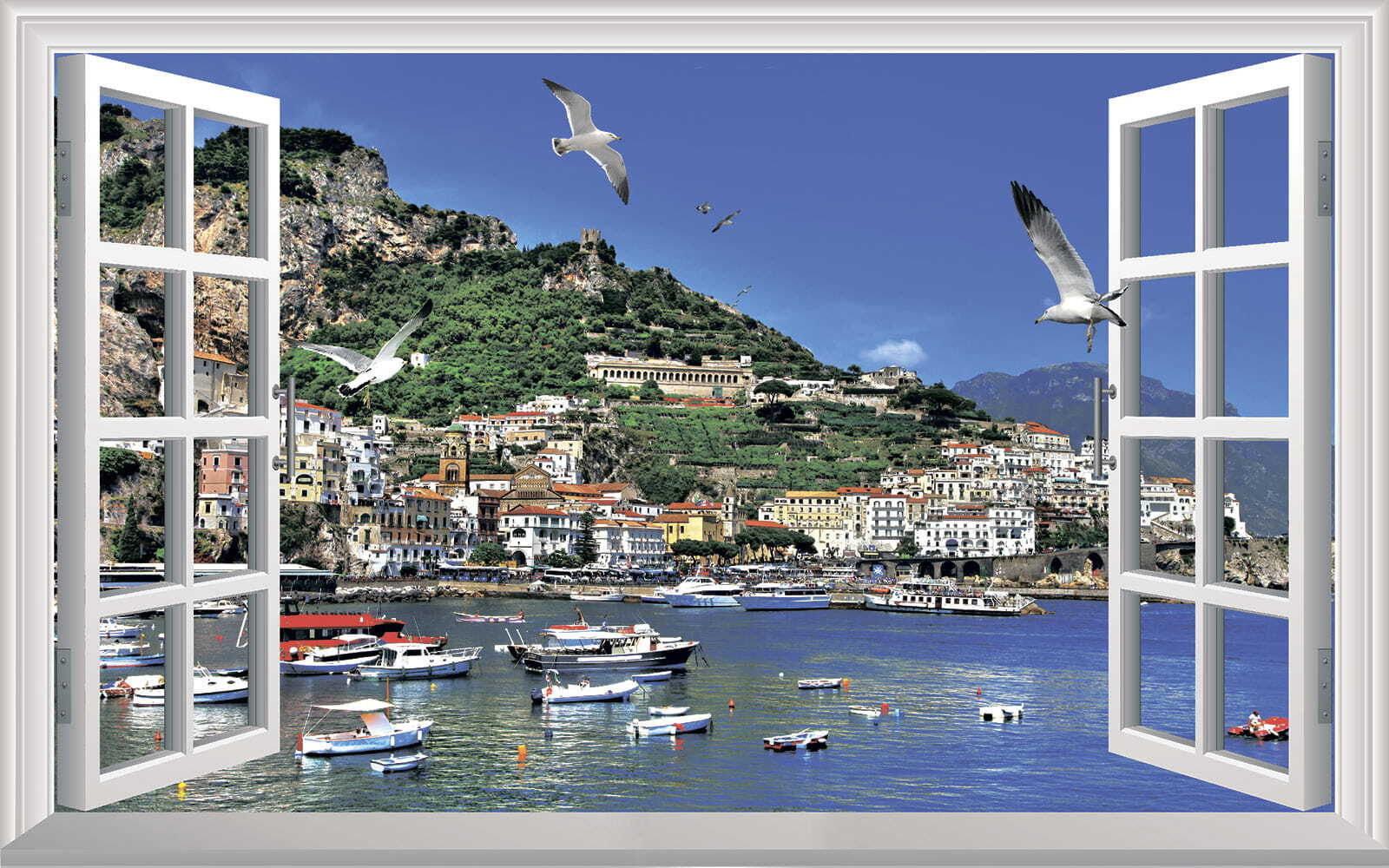 Proměňte svůj prostor pomocí této úchvatné nástěnné malby „Okno s výhledem na město a lodě“. Představte si, že se každý den probouzíte s touto živou scenérií – jako byste byli na dovolené, aniž byste museli balit kufry! Malebné nábřeží je zarámováno jako pohlednice a nabízí útulný únik přímo ve vašem obývacím pokoji. Ty jemné vlny a barevné lodě jako by vás volaly a lákaly k snění o slunečných dobrodružstvích a brunchech u moře. Je ideální pro přidání osvěžujícího nádechu, díky kterému bude každá zeď působit, jako by měla co vyprávět. Ponořte se do této panoramatické blaženosti a nechte své stěny promlouvat!