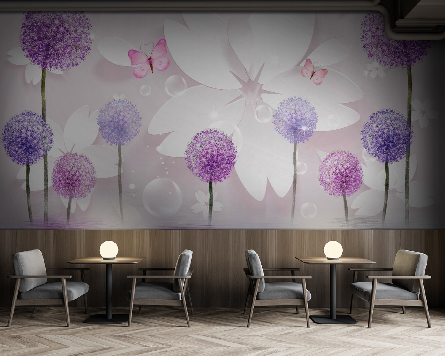 1 recenze Fototapeta Fialové květy a motýli v harmonii