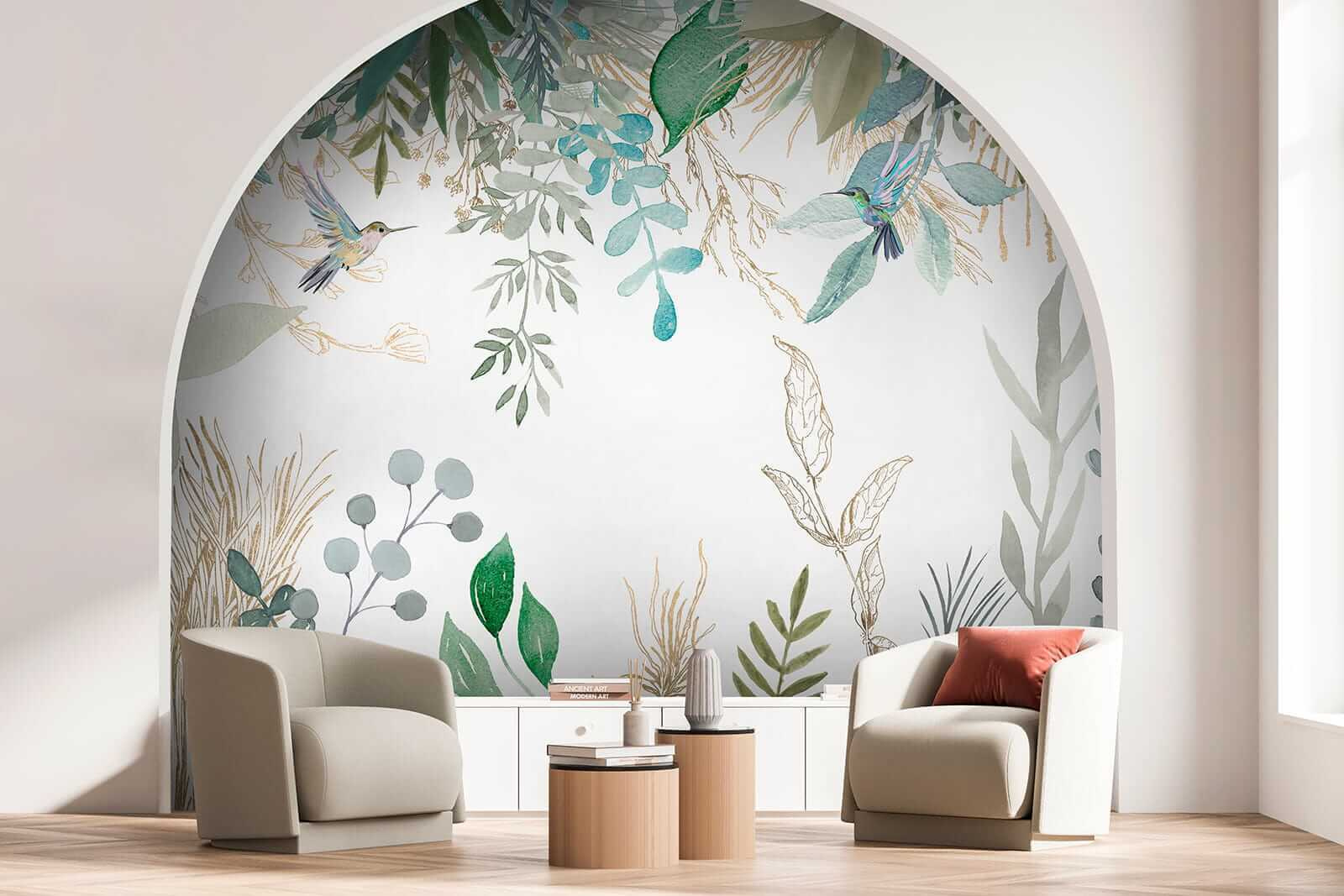 5 recenzí Fototapeta Kolibříci uprostřed svěžího listí ilustrace