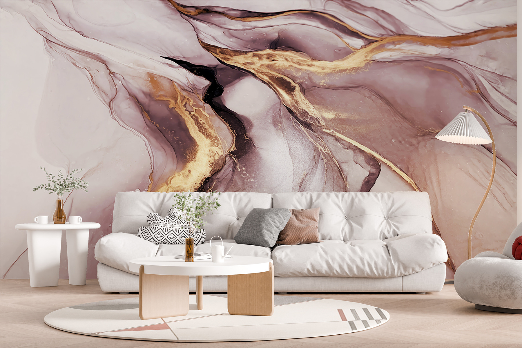 Proměňte svůj prostor ve snovou oázu díky této nástěnné malbě s vířivými mramorovými vzory. Představte si, že vstoupíte do světa, kde spolu barvy hravě tančí a vytvářejí uklidňující atmosféru, která okamžitě povznese každou místnost. Je to jako zahalit stěny do měkkých, splývavých odstínů, které vám připomínají jemné vlny nebo útulné víření kávy. Ať už se jedná o živý obývací pokoj nebo pohodový čtecí koutek, tato nástěnná malba vybízí ke konverzaci a komplimentům. Upoutá pozornost, aniž by byla příliš hlasitá, našeptává sofistikovanost a zároveň zachovává uvolněnost. Ideální pro rychlé osvěžení, stačí sloupnout, nalepit a voila!