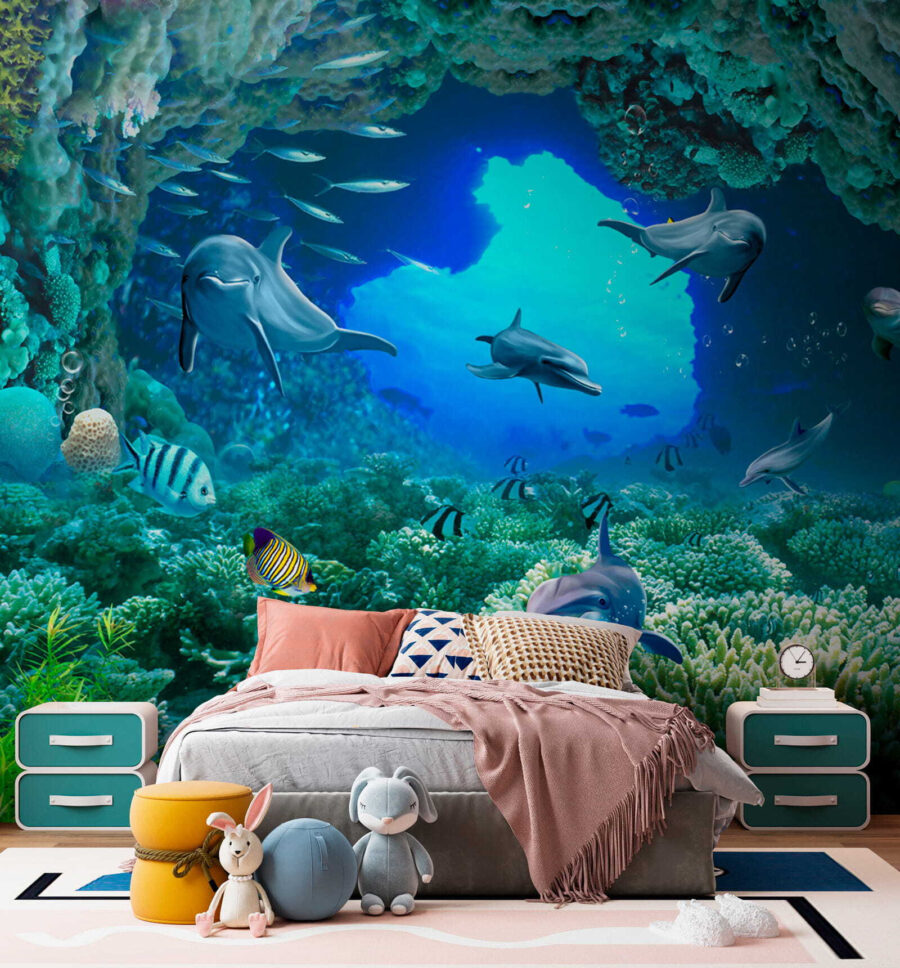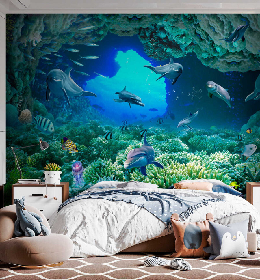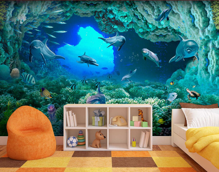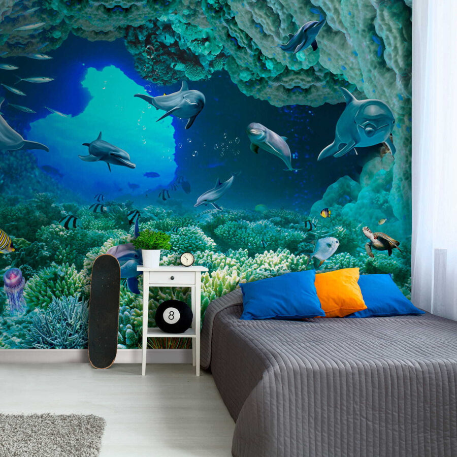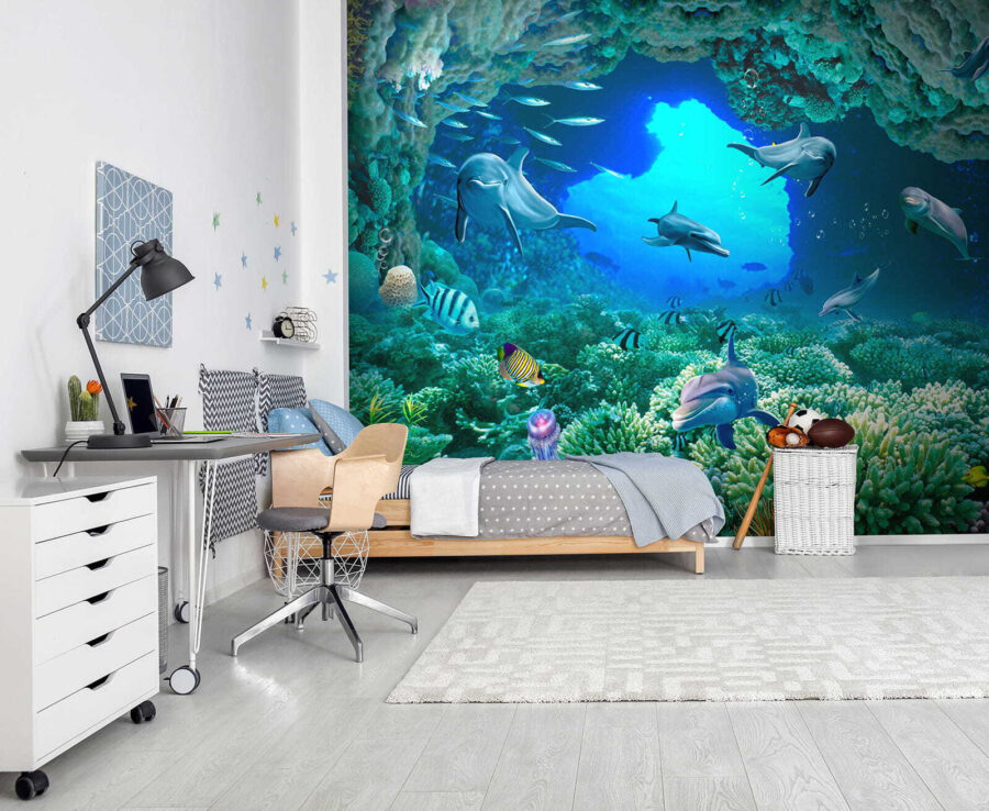 Ponořte se přímo do kouzla hluboké modři s touto úžasnou nástěnnou malbou – “Delfín plave ve vodě”! Představte si, že se probudíte do tohoto živého podmořského světa přímo ve svém obývacím pokoji nebo ložnici. Delfíni vypadají tak šťastně a hravě, skoro jako by vás zvali, abyste se k nim přidali! Díky zářivým barvám a složitým detailům korálů a ryb máte pocit, jako byste se potápěli v tropických vodách… aniž byste museli opustit svůj domov. Vážně, je to jednosměrná jízdenka do přímořských vibrací, a kdo by jich nepotřeboval trochu víc! Děti i dospělí budou zbožňovat klidnou a zároveň dobrodružnou energii, kterou tato nástěnná malba přináší – je to jako mít akvárium, ale bez údržby. Perfektně se hodí do každého pokoje, který potřebuje oživení a špetku rozmarů – postavte ji a připravte se na to, že vás každý den ohromí!