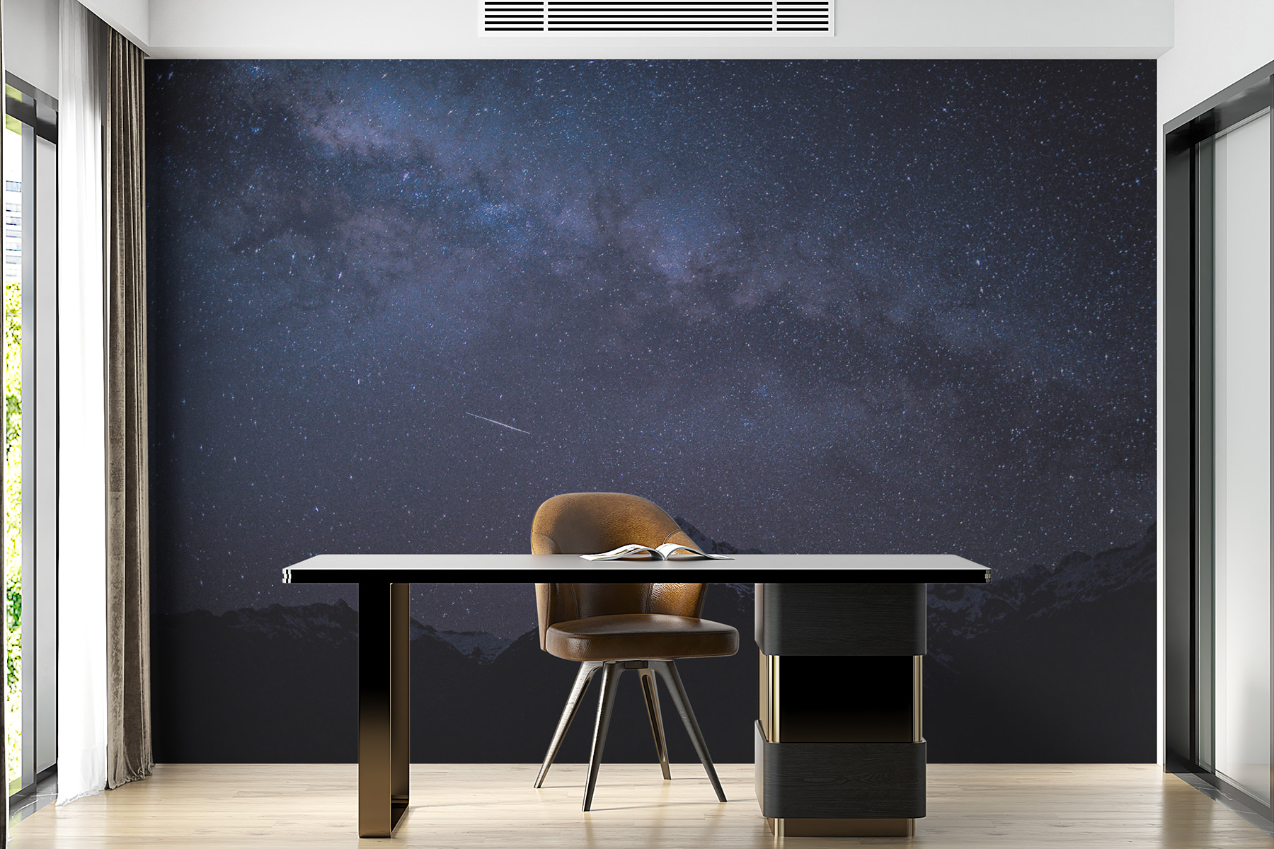 Představte si, že vstoupíte do útulného útočiště, kde se rozeklané hory setkávají s hvězdami – ano, to je kouzlo této nástěnné malby! Promění vaši zeď v úchvatnou noční krajinu a pozve klid hor přímo do vašeho prostoru. Představte si útulné křeslo, možná s teplým nápojem v ruce, zatímco oči se budou snášet k vrcholkům, které jako by šeptaly tajemství vesmíru. Je to jako mít svůj vlastní malý únik, ideální pro snění nebo podněcování nočních rozhovorů. Navíc, kdo by nechtěl zapůsobit na hosty výhledem, který říká: “Hej, jsem hluboko v horách, alespoň co se týče výzdoby!”. Jde jen o to vytvořit tu pohodovou atmosféru. Ideální pro každý kout – ložnice, obývací pokoje nebo třeba tvůrčí pracoviště.