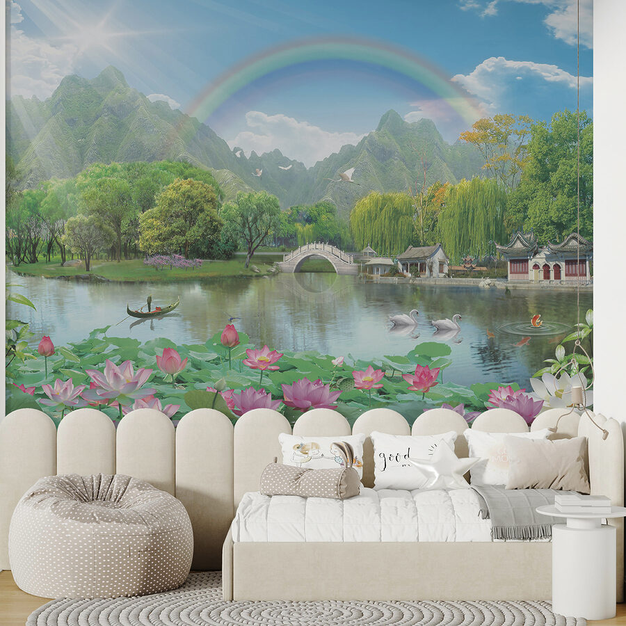 Představte si, že vstoupíte do pokoje a přenesete se do klidného ráje u jezera… Cítíte to? Přesně to dokáže tato nástěnná malba. “Klidná krajina s lotosovými květy” je jako jemný povzdech pro vaši duši – uklidňující a klidný. Ideální do dětských pokojů nebo jakéhokoli prostoru, který potřebuje klidný nádech. Představte si, že se po hektickém dni odreagováváte, vyhříváte se v měkké záři zapadajícího slunce a vzduch je naplněn sladkou vůní lotosových květů… Každý den se budete cítit jako na dovolené! Navíc je to krásný začátek konverzace pro hosty (nebo dokonalé pozadí pro Instagram). Ať už zdobíte dětský pokoj nebo přidáváte do svého obytného prostoru dotek přírody, tato nástěnná malba vám jistě vykouzlí úsměv na tváři pokaždé, když ji uvidíte.