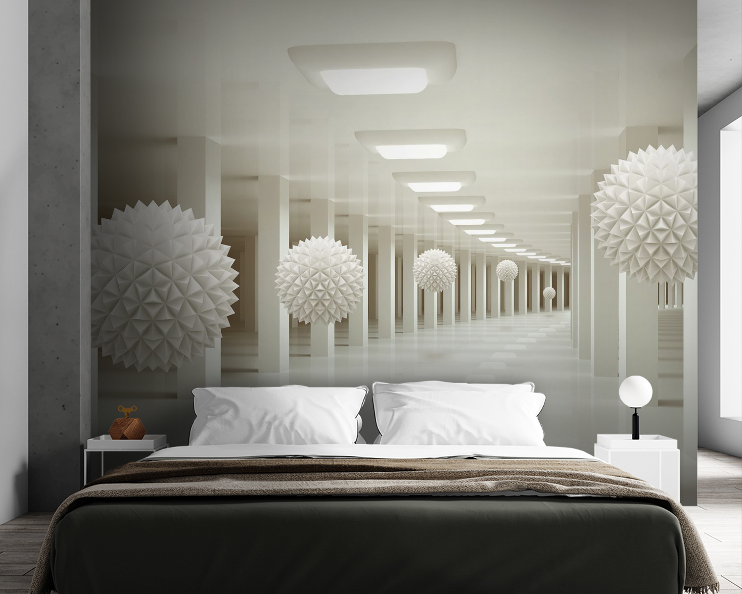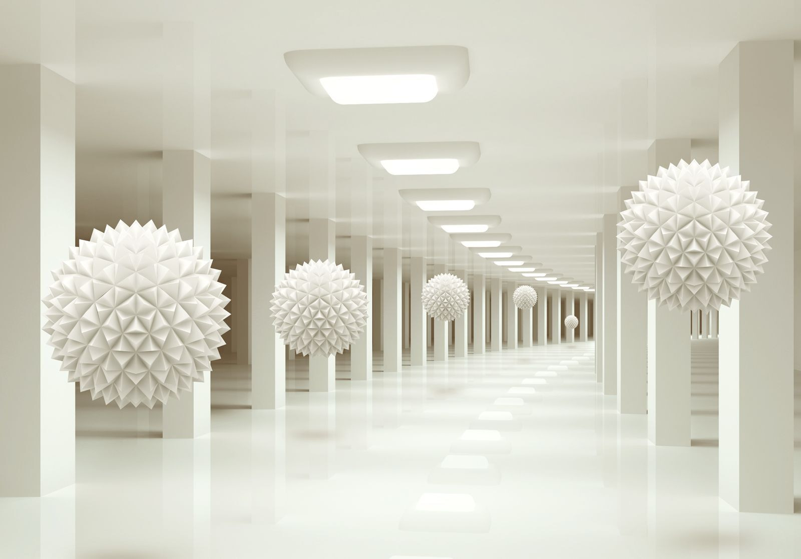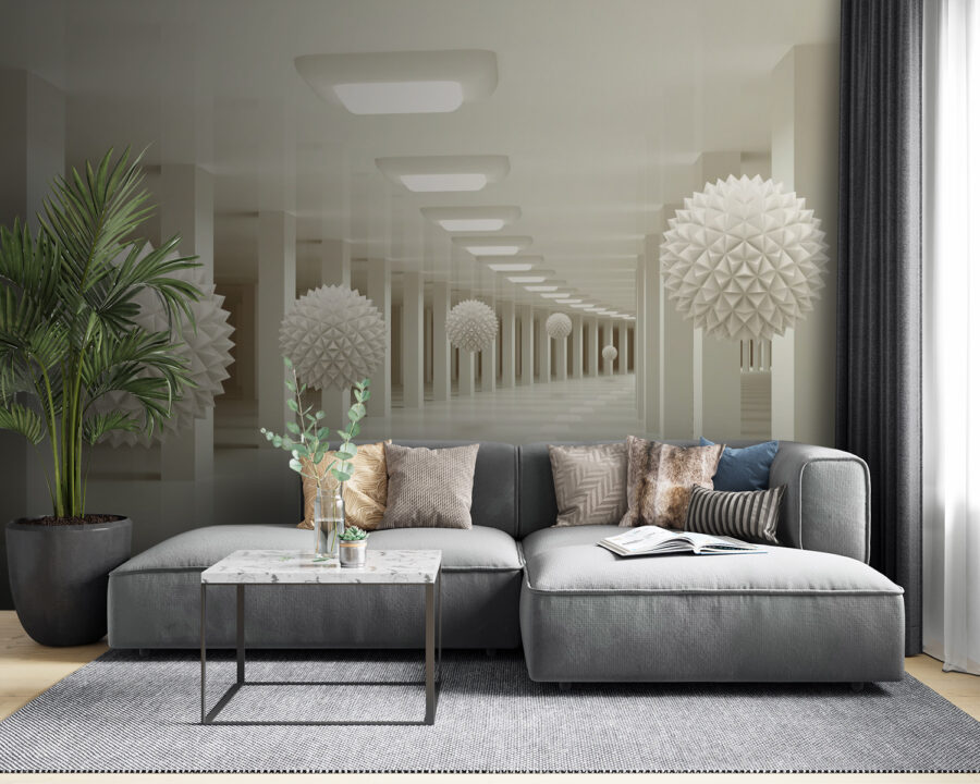 Chtěli jste si někdy připadat jako ve futuristické umělecké galerii? Nástěnná malba “Bílá koule s trojúhelníky” vám přesně takovou atmosféru přinese! Představte si ji ve svém útulném obývacím pokoji nebo elegantním kancelářském prostoru – přehlídka 3D bílých koulí, které se klidně vznášejí uprostřed geometrické říše divů. Je to jako vstoupit do jiné dimenze!