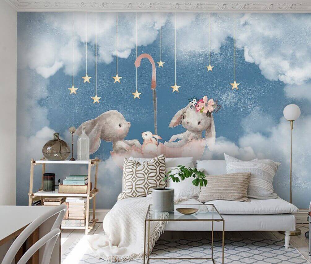 Transform your space with the delightful charm of “Two Rabbits in a Pink Umbrella.” This enchanting mural brings playful whimsy to any room, featuring adorable bunnies floating through dreamy clouds, connected by a bright pink umbrella. It feels like a gentle hug for your walls, perfect for brightening up a nursery, playroom, or even that cozy reading nook. Imagine sipping tea with this mural as your backdrop—who wouldn’t smile? It’s like a little slice of magic that sparks joy. The soft colors and sweet details invite daydreaming and giggles, making every glance a mini escape.