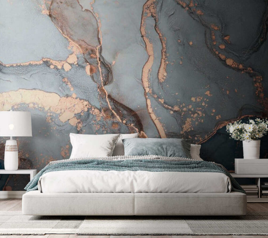 Proměňte svůj prostor pomocí okouzlující “Fototapety na zeď Abstraktní měděné proudy v modré barvě”. Představte si, že vstoupíte do místnosti, kde se víří jemná modř a teplé odstíny a vytvářejí klidnou atmosféru. Je to jako jemný vánek v teplém dni, který přináší klidné vibrace vybízející k odpočinku. Představte si útulný čtecí koutek nebo elegantní kancelář s touto nástěnnou malbou jako pozadím – mluvte o okamžitém vylepšení stylu! Navíc vyvolává konverzace. “Kde jsi to našel?” budou se ptát a vy se budete moci podělit o radost! Tato fototapeta nejen zdobí, ale vdechne život každé stěně a připraví půdu pro důležité okamžiky.