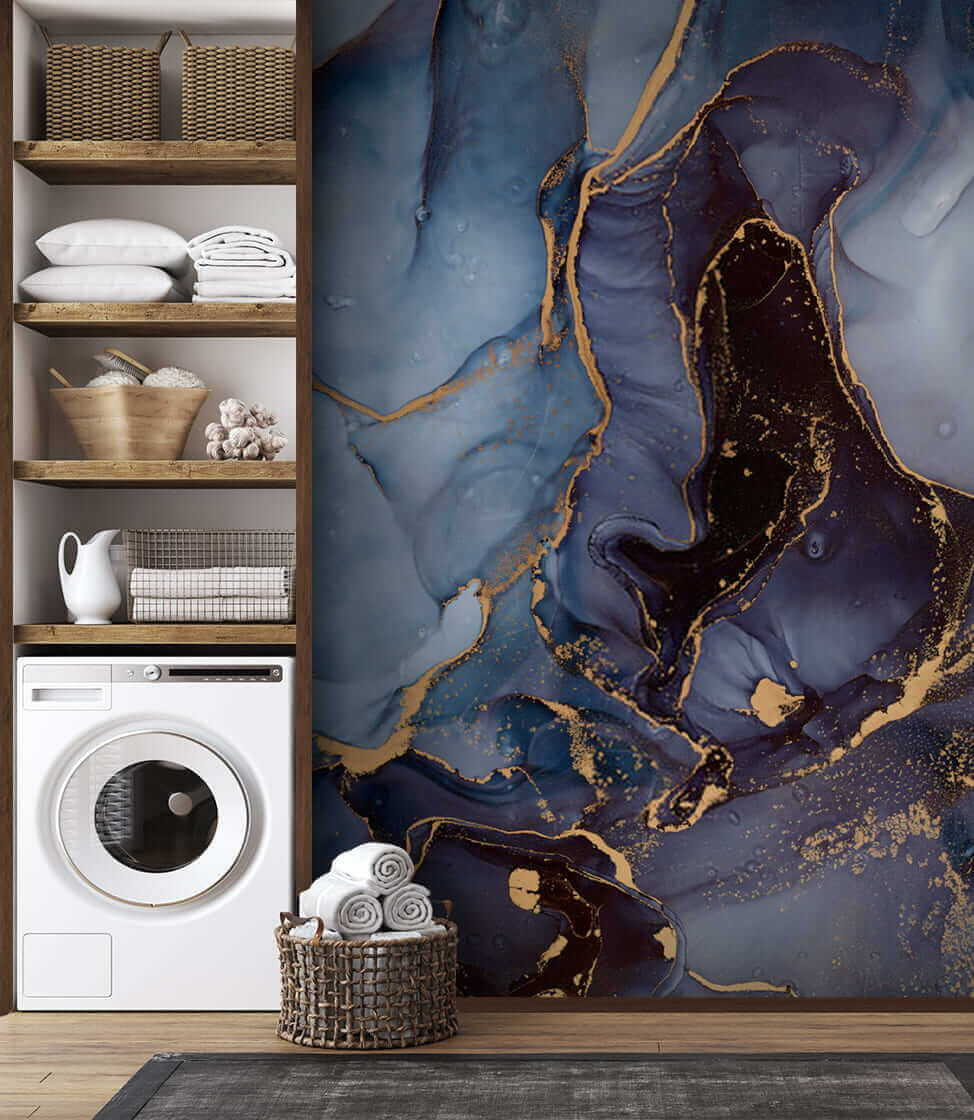 Proměna místnosti může působit jako kouzlo, že? Tato nástěnná malba s abstraktním inkoustovým vzorem je tím pravým pro tento kouzelný nádech. S vířícími odstíny modré a hlubokými tóny přináší uměleckou atmosféru, která působí svěže a moderně. Každý, kdo vstoupí do prostoru, možná zpomalí, aby mohl obdivovat úžasnou souhru barev. Představte si útulné večery s teplou kávou v ruce, kdy jemné akcenty jen tak zachycují světlo. Tato nástěnná malba jako by našeptávala příběhy o kreativitě, ideální pro domácí kancelář nebo pohodový čtecí koutek. Je to jako lákavé objetí pro vaše stěny!
