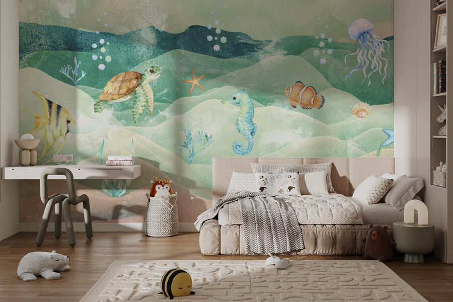 Představte si, že se každý den probouzíte do klidné podmořské scény s touto nástěnnou malbou “Akvarel plavající želvy”. Perfektně se hodí do každé místnosti, která potřebuje trochu rozmarů a zázraků – do dětských pokojů, heren nebo na jakékoli místo, které touží po veselé atmosféře. Představte si želvu klouzající mezi živými rybami a něžnými mořskými živočichy, která vnese na vaši zeď příval života. Tato nástěnná malba není jen dekorací, je to brána k podmořským dobrodružstvím. Pociťte, jak se na vás s jemnými akvarelovými odstíny snáší klid… je to jako ponořit se do snění! A to nejlepší? Děti ji naprosto milují! Podněcuje fantazii a promění jakýkoli prostor v kouzelný podmořský svět. Není to jen hezké, je to celý oceán zábavy na vaší zdi! Tak se do toho ponořte – vaše stěny vám poděkují.