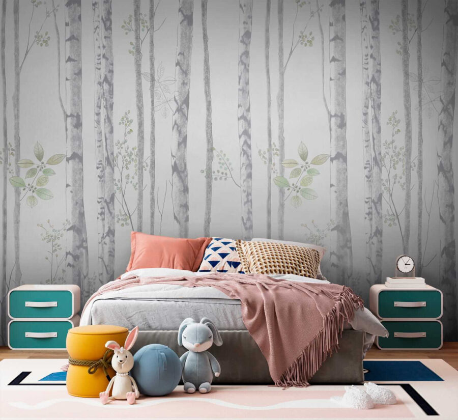 Proměňte jakýkoli prostor pomocí okouzlující nástěnné malby břízy zdobené jemnými zelenými listy. Představte si, že vstoupíte do klidného lesa, kde příroda šumí a sluneční paprsky tančí mezi listy. Tento design přináší klidnou atmosféru, ideální do dětského pokoje nebo útulného čtecího koutku. Jemné barvy nabízejí osvěžující kontrast na stěnách a působí lehkým a vzdušným dojmem. Ať už jde o vyprávění příběhů nebo snění, vybízí k představivosti. Jen si představte děti, jak se chichotají a hrají si mezi kmeny na schovávanou – každý pohled na tyto stromy je jako malý únik do náruče přírody.