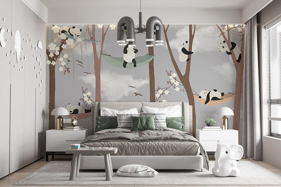 Jak rozkošná je tato nástěnná malba “Karikatura pandy”? Vážně, jen se podívejte na ty pandy, jak si lebedí v houpacích sítích mezi stromy – je to jako výjev z rozmarného snu! Tato nástěnná malba je ideální do dětského pokoje nebo dětského pokoje a přináší pocit klidu a hravosti. Představte si pohádky před spaním pod tímto uměleckým dílem… ty malé pandy, které usínají, by mohly udělat totéž pro vaše dítě. A má ty krásné, jemné barvy – jemné pro oči, ale stále dostatečně živé, aby upoutaly představivost. Ať už si chcete vyzdobit dětský pokoj nebo vytvořit klidný koutek, tato nástěnná malba vám zaručeně dodá šmrnc a kbelík úsměvů. Jen do toho, nechte pandy kouzlit!