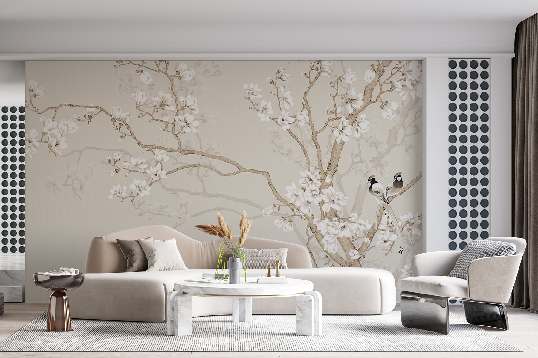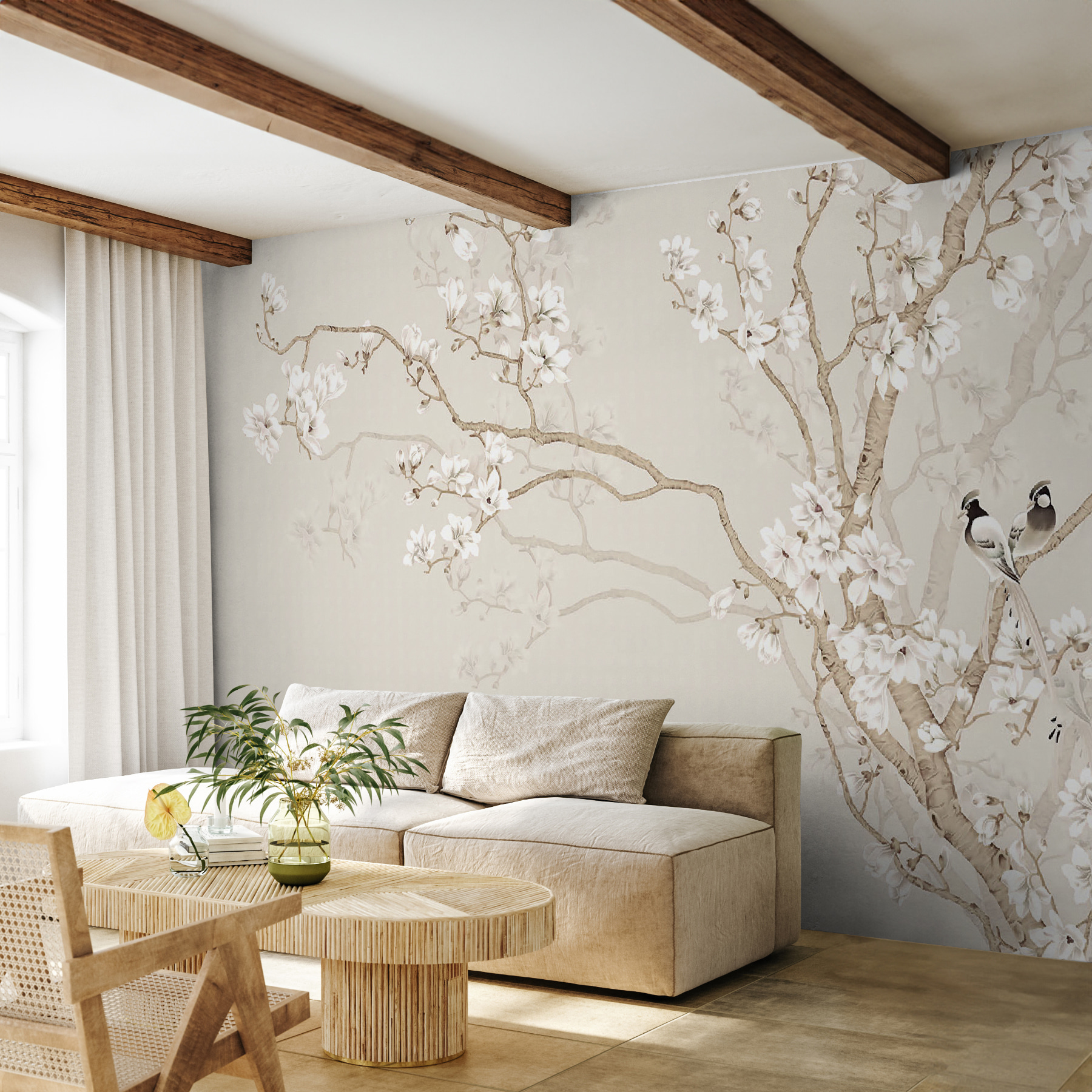 Představte si, že se probudíte do jemného rána… ptáci tiše sedí na rozkvetlých větvích, skoro jako by si šeptali sladké vzkazy. Tato nástěnná malba není jen hezký obrázek – je to celá nálada! Ideální pro ty, kdo si cení klidných, přírodních vibrací. Znáte to… když chcete, aby se váš prostor cítil jako klidná svatyně. Krásné, jemné květiny dodají každé místnosti pocit přívětivosti. A ti ptáci? Tak okouzlující, že se možná přistihnete, jak se usmíváte pokaždé, když procházíte kolem. 3D efekt dodává obrázkům extra náboj, takže vše vynikne jako nádherné umělecké dílo na vaší zdi. Ideální pro duše milující přírodu, které si chtějí vytvořit útulný, rozmarný koutek. Navíc se hodí do všech typů interiérů – rustikálních, moderních i někam mezi ně. Věřte, že je to ten typ nástěnné malby, po které se vám srdce rozbuší jen o kousek… každý den.