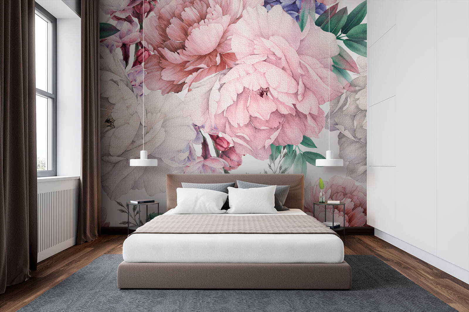 Proměňte svůj prostor pomocí této úžasné nástěnné malby s krásnou směsí akvarelových květů. Představte si, že vejdete do místnosti, kde pivoňky a jemné odstíny okamžitě zvednou náladu – jako zahrada radosti rozprostřená po stěnách. Jemné okvětní lístky této nástěnné malby vybízejí k vřelosti a klidu a zútulní každý prostor. Ideální pro útulná zákoutí nebo živé obývací pokoje, je snadné pochopit, jak se lidé mohou ztratit v zářivých barvách. Představte si, jak se přátelé scházejí, obdivují umění a cítí se v květinovém objetí jako doma. Není to jen dekorace, je to důvod ke každodennímu úsměvu.