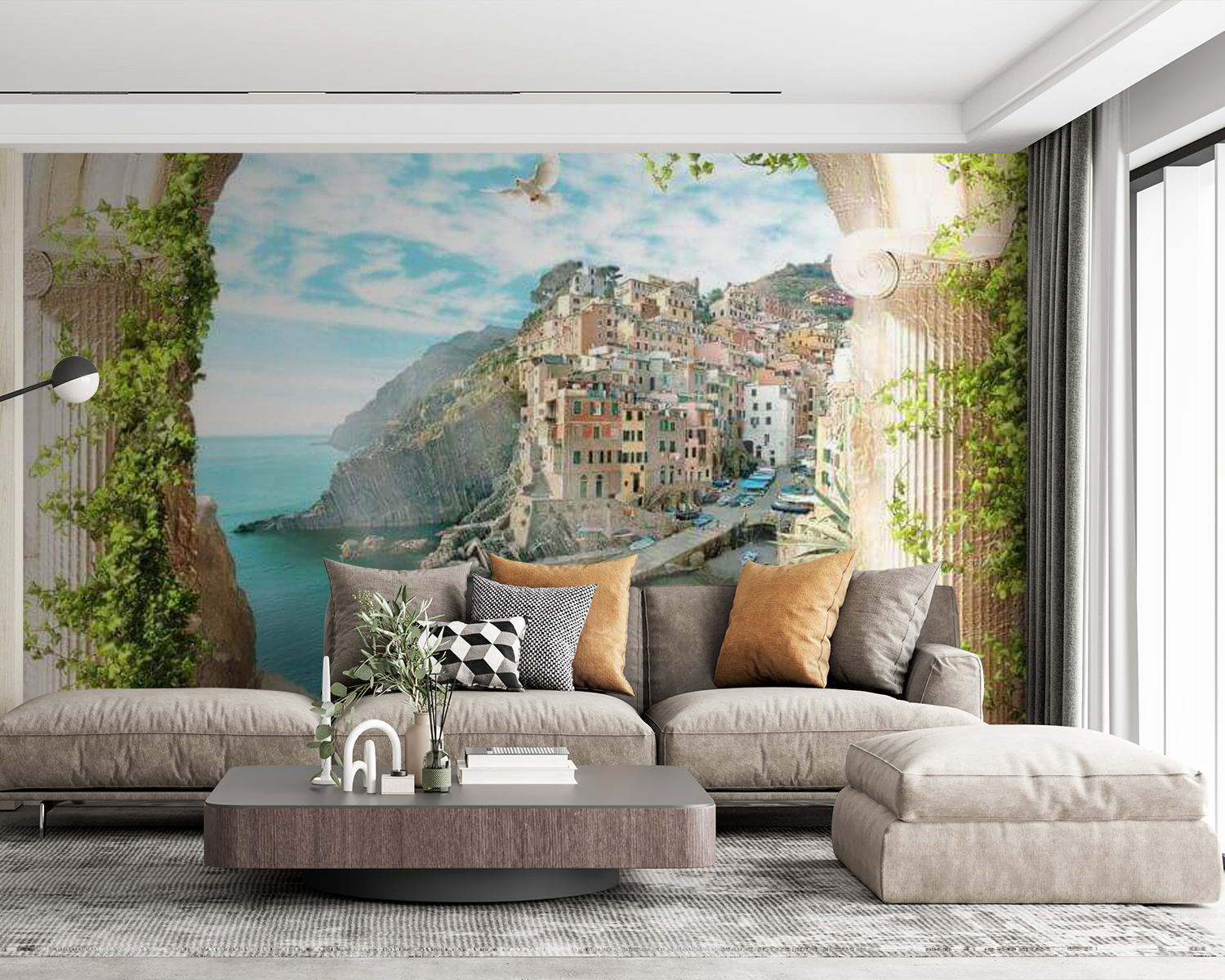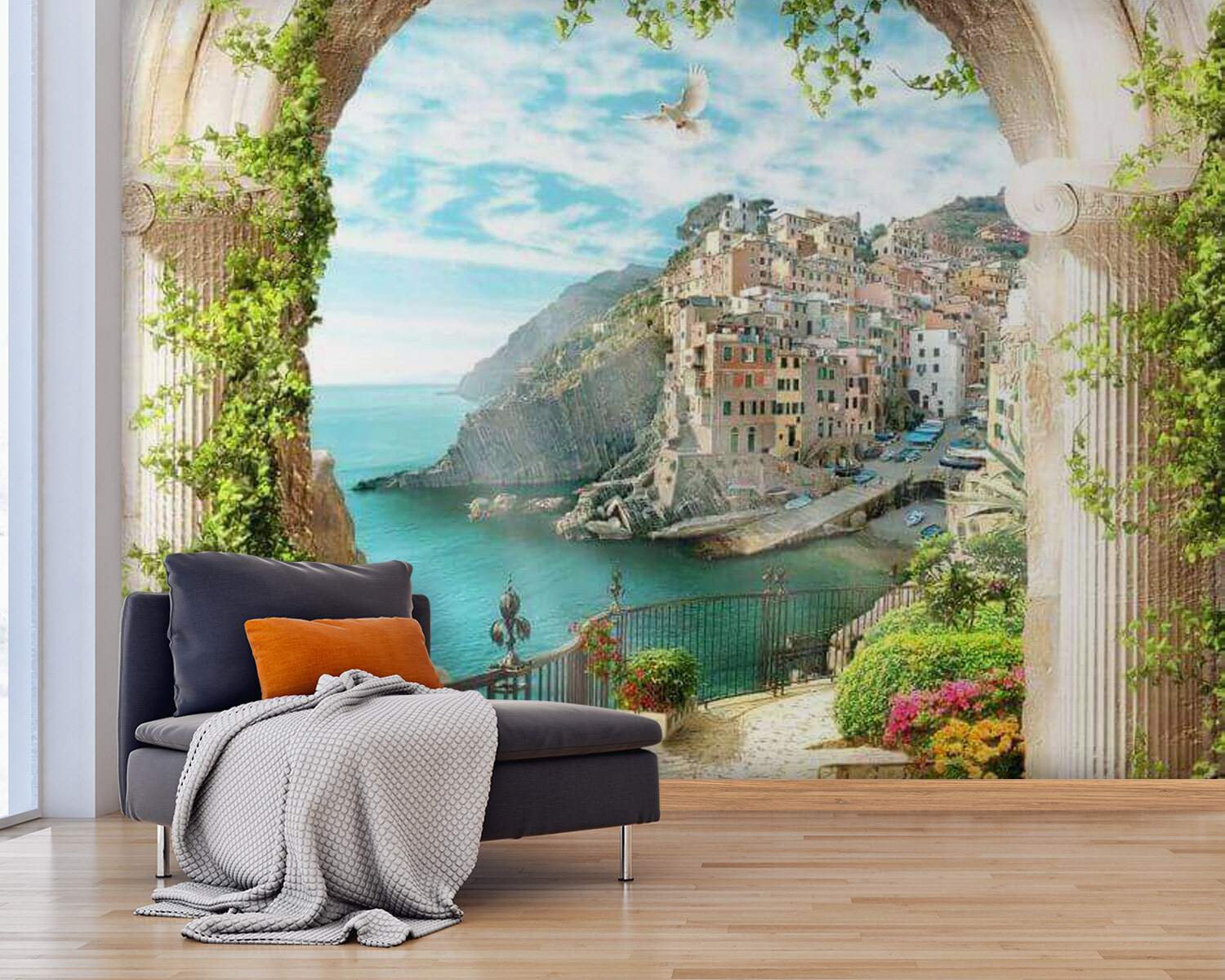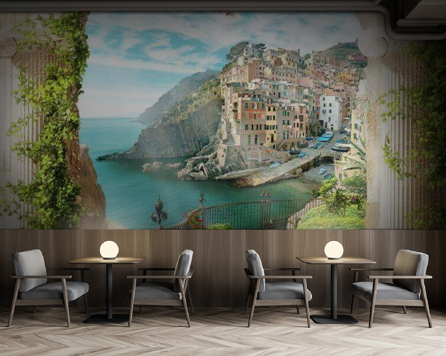 S nástěnnou malbou “Rostlina v květináči” přenesete svůj prostor do snového pobřežního útočiště! Ach, ten výhled – na okouzlující přímořskou vesničku skrz kouzelný oblouk, zahalený do svěží zeleně. Představte si, jak popíjíte ranní kávu, zatímco sluneční paprsky tančí na vodě… Pokaždé, když se na něj podíváte, je to jako mini dovolená!