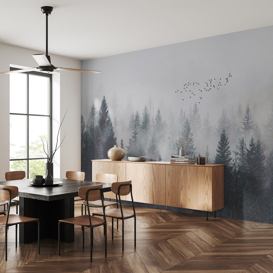 Proměňte svůj prostor pomocí této úžasné nástěnné malby s hejnem ptáků vznášejících se na zasněné obloze. Představte si, že vstoupíte do klidného lesa, kde šumící stromy šeptají příběhy o dobrodružství. Jemná mlha dodává nádech tajemna, takže si budete připadat, jako byste se ztratili v přírodě – dokonce i ve svém obývacím pokoji. Vybízí ke snění a chvílím rozjímání. Přátelé se vás možná zeptají, jestli jste si venkovní přírodu přenesli dovnitř. Tato nástěnná malba, která se skvěle hodí do útulných zákoutí nebo na živou stěnu, bez námahy spojuje umění s klidem a vytváří útočiště pro odpočinek a inspiraci.