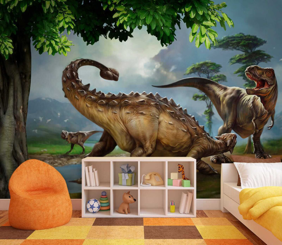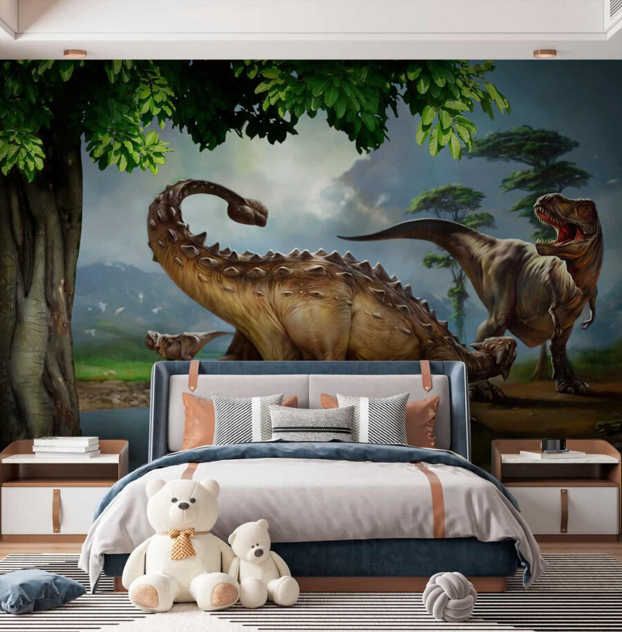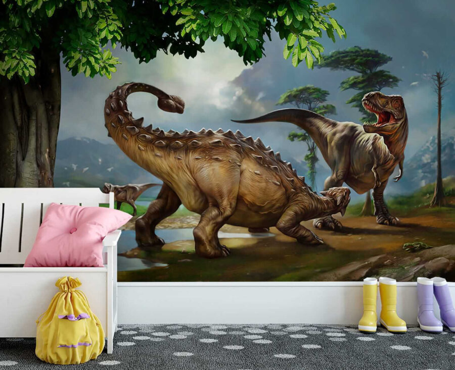 Představte si, že vstoupíte do scény z dinosauřího trháku – tato nástěnná malba je přesně taková! Představuje dinosaura v nadživotní velikosti s dlouhými rohy a ocasem, který jako by se táhl přes celou stěnu. Děti z něj šílí, protože, přiznejme si to, dinosauři jsou prostě cool. A hele, není to jen pro děti. Každý, kdo má rád ve svém interiéru nádech prehistorického dobrodružství, bude mít s touto nástěnnou malbou úspěch. Je to jako mít doma vlastní jurskou oázu – až na ty dunící kroky… fuj! Ideální do ložnic, dětských pokojů, ale i do svérázných obytných prostor. Díky zářivým barvám a neuvěřitelným detailům je to téměř jako návrat do období křídy. Cestování časem, chce někdo cestovat? Proměňte svůj prostor v místo, kde se bude konverzovat, a nechte tyto dávné krajiny a tvory, aby každý den podněcovali představivost a úžas.