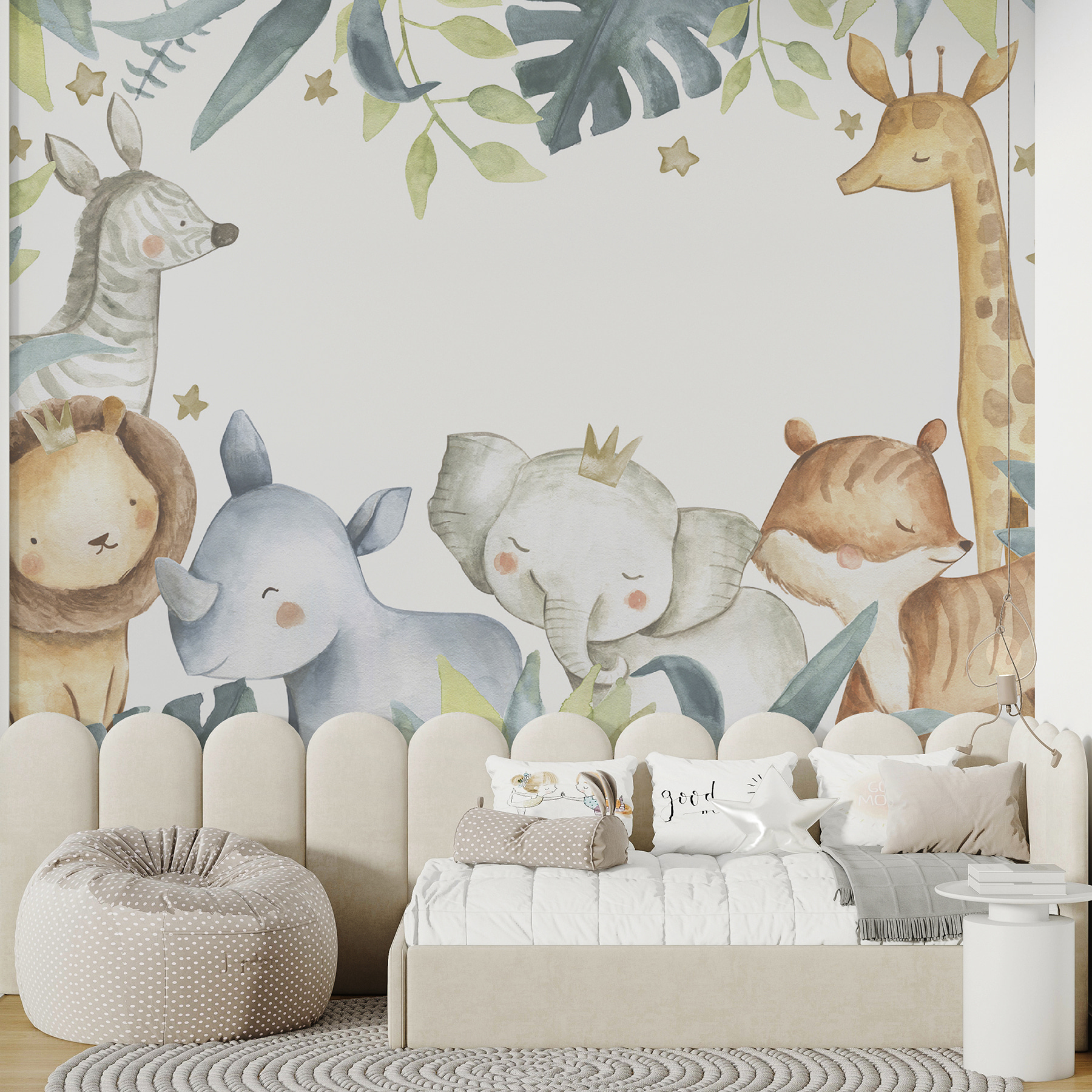 Chcete rozzářit prostor svého dítěte? Tato rozkošná nástěnná malba “Akvarel slona a lišky” je naprostou nutností! Představte si jemné, zasněné akvarelové odstíny malující okouzlující scénu přímo na stěnu – ideální do dětského pokoje nebo dětského pokoje! Roztomilá a přátelská zvířátka, jako je slon v drobné korunce a sladká podřimující liška, jistě vykouzlí úsměv na tváři. Navíc listový rám a náladové hvězdy dodají obrázku další kouzlo. Představte si radost vašeho dítěte, které se zabalí do tohoto kouzelného světa připomínajícího pohádkovou knihu. Není to jen dekorace – je to každodenní dávka radosti! A hele, kdo by odolal zkrocenému safari dobrodružství pro svého malého průzkumníka?