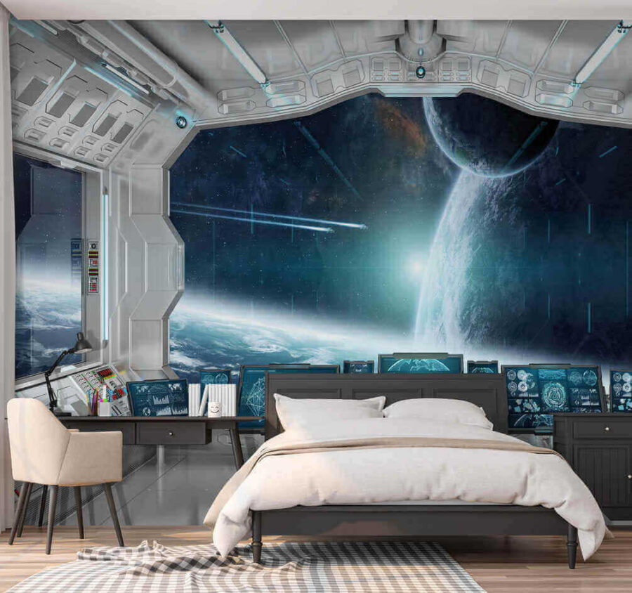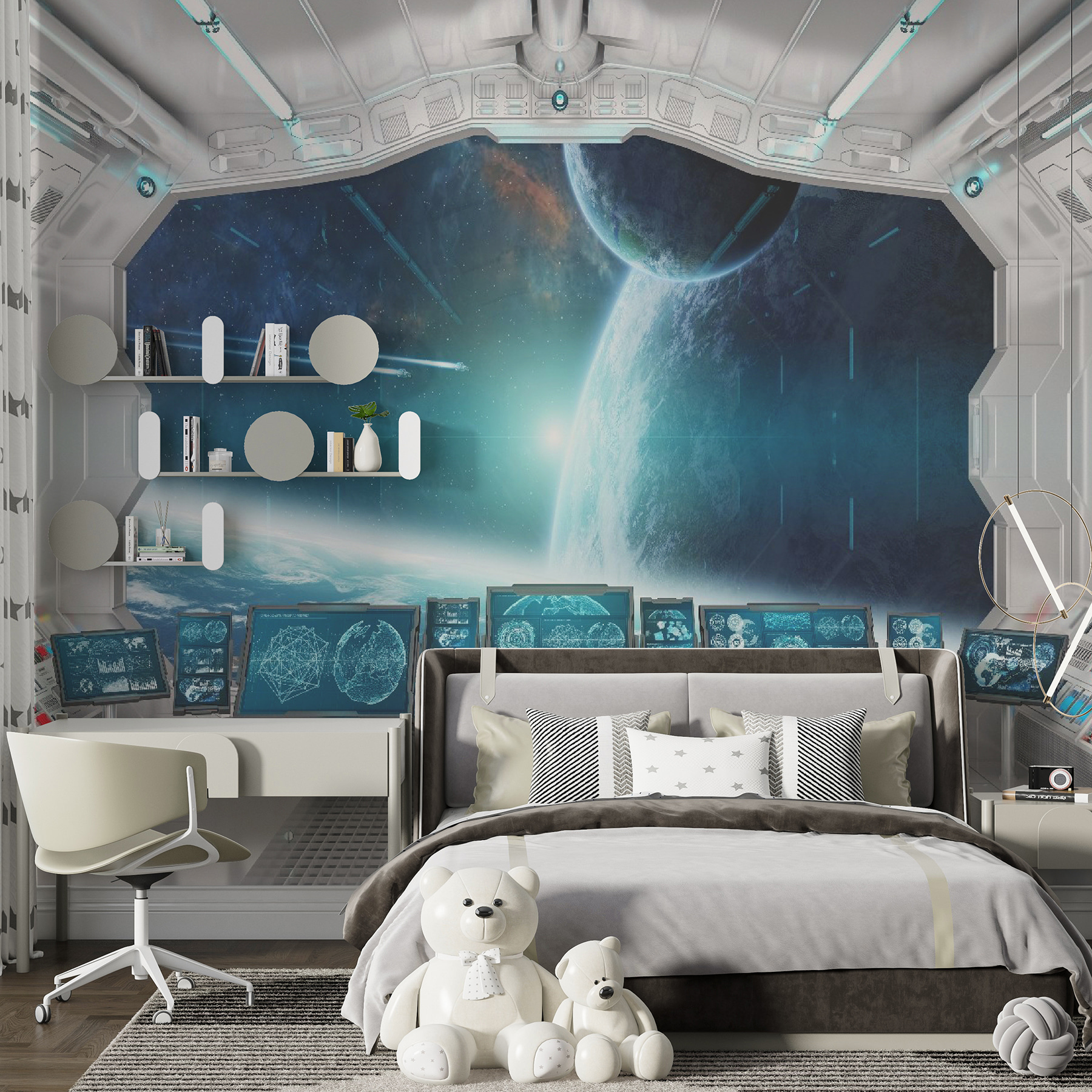 Představte si, že vstoupíte do svého pokoje a máte pocit, že velíte vesmírné lodi – zní to skvěle, že? Tato nástěnná malba přesně to dokáže. Je to jako portál do jiného vesmíru s futuristickým ovládáním a úchvatným výhledem do vesmíru! Ideální pro snění ve velkém a prožívání imaginárních dobrodružství – děti i dospělí s mladým srdcem si ji zamilují. Není to jen nástěnná malba, je to zážitek. Instalací do svého prostoru ho okamžitě proměníte v zázračnou sci-fi zemi. Dokážete si představit, že si dáte ranní kávu s výhledem na vzdálené galaxie? Mluvte o hvězdném začátku dne! 🚀✨