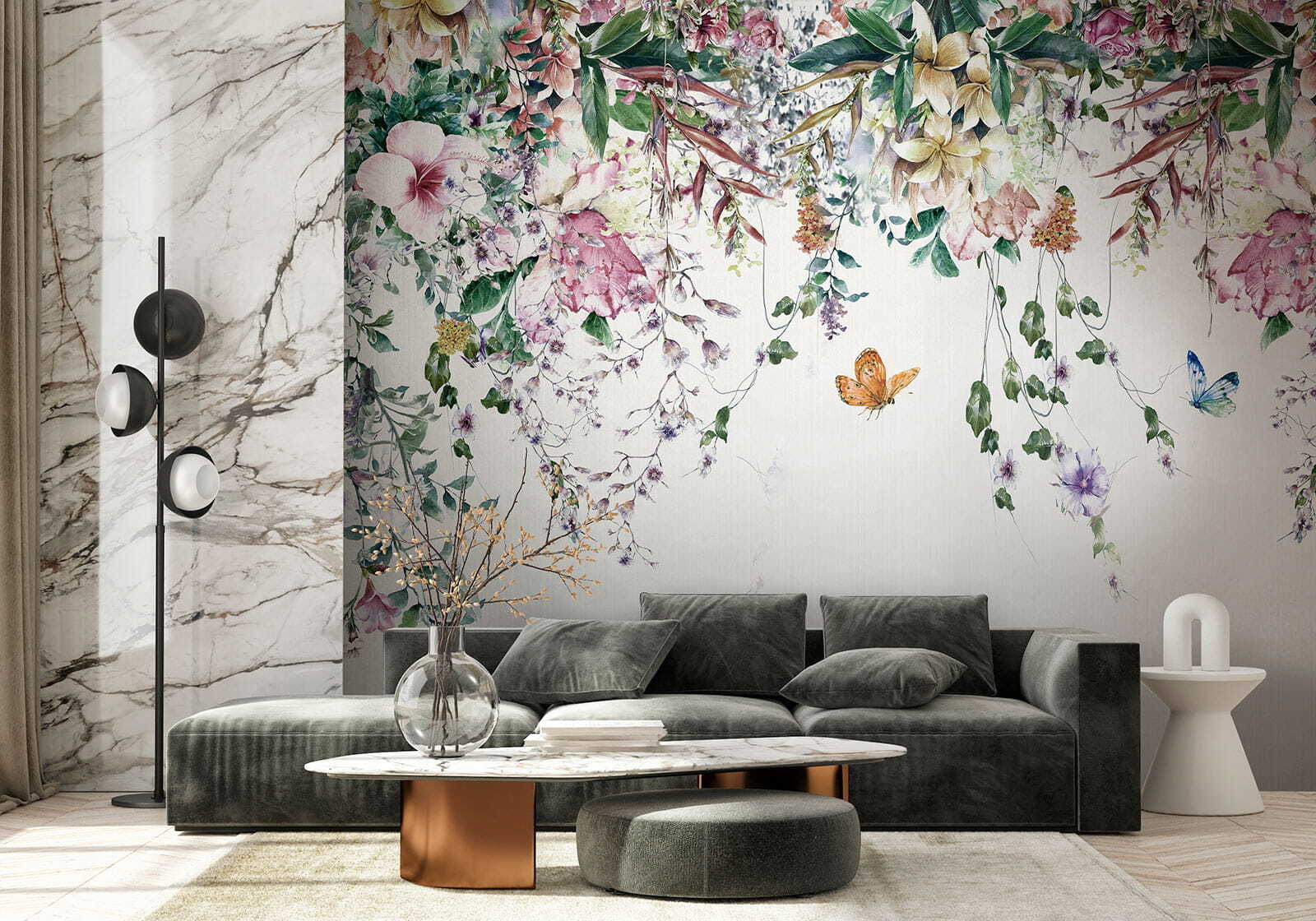 Tato nástěnná malba není jen dekorace – je to nálada. Představte si, jak odpočíváte po dlouhém dni obklopeni květy a vznášejícími se motýly… klid, že? Je to jako mít svůj osobní kousek ráje. Tak proč čekat? Nechte své stěny vyprávět příběh plný elegance a živého šarmu!