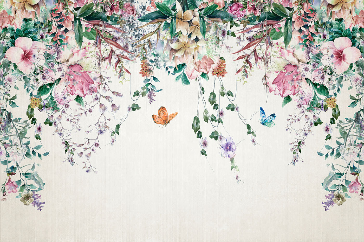 Proměňte svůj prostor ve snovou zahradu s nástěnnou malbou “Motýli poletují uprostřed rozkvetlého ráje”. Tato akvarelová nástěnná malba je jako vstup do pohádky – jemní motýli a zářivé květiny tančí po vašich stěnách. Představte si, že vejdete do místnosti, která vám okamžitě zvedne náladu svým přívalem barev a půvabu.
