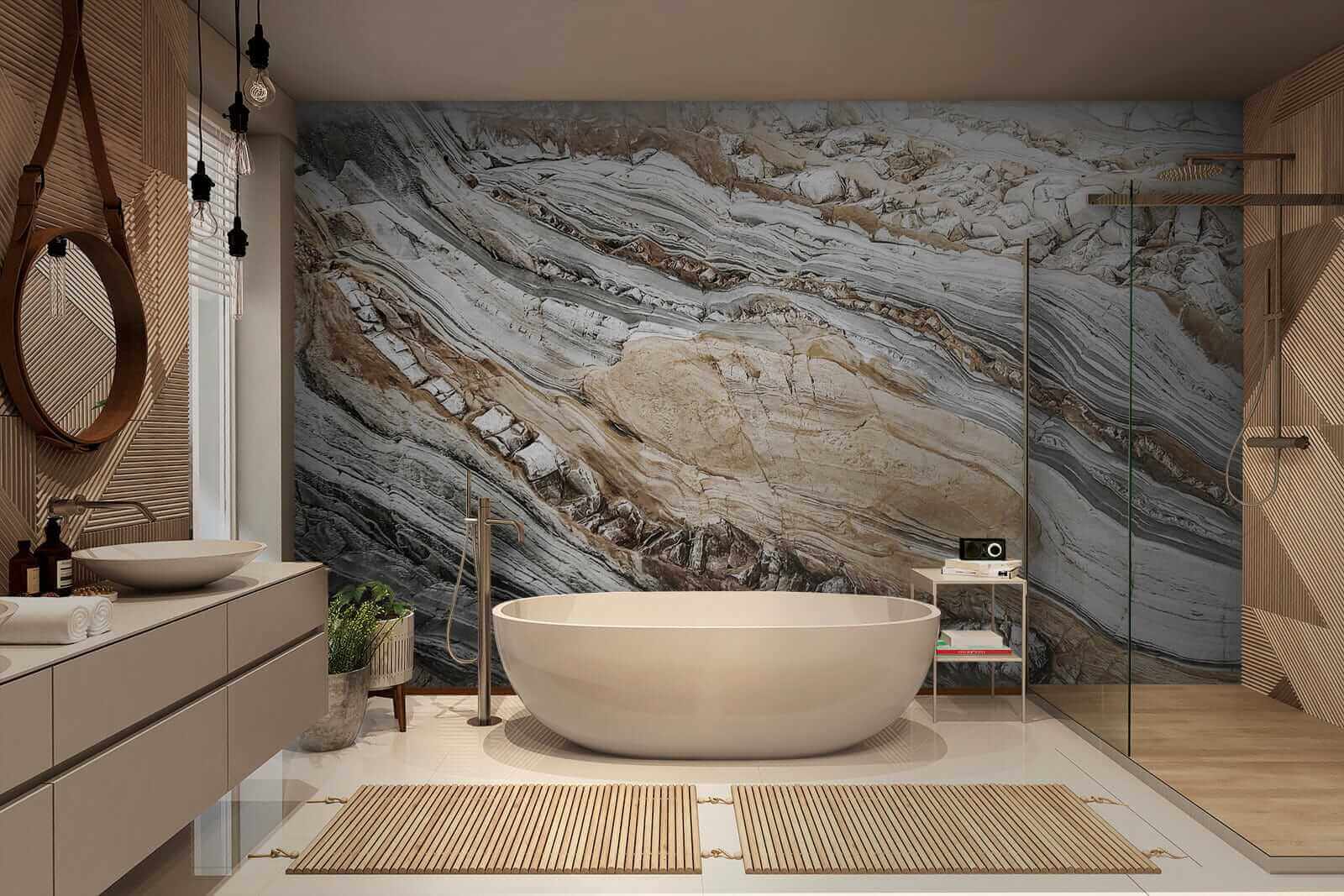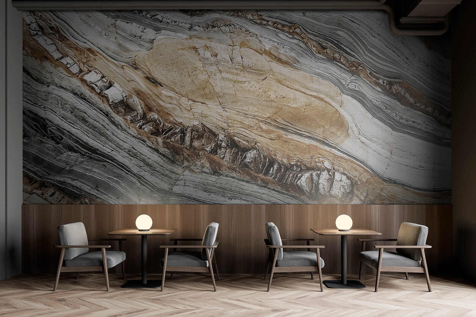 Představte si to: vejdete do obývacího pokoje a BUM – je tam fascinující přehlídka přírodních vrstev hornin v uklidňujících zemitých tónech. Tato nástěnná malba je jako umění přírody a vnese do vašeho prostoru zemitou, uzemňující atmosféru. Má neuvěřitelný 3D efekt – skoro máte pocit, že byste se mohli natáhnout a dotknout se těch mramorovaných textur.